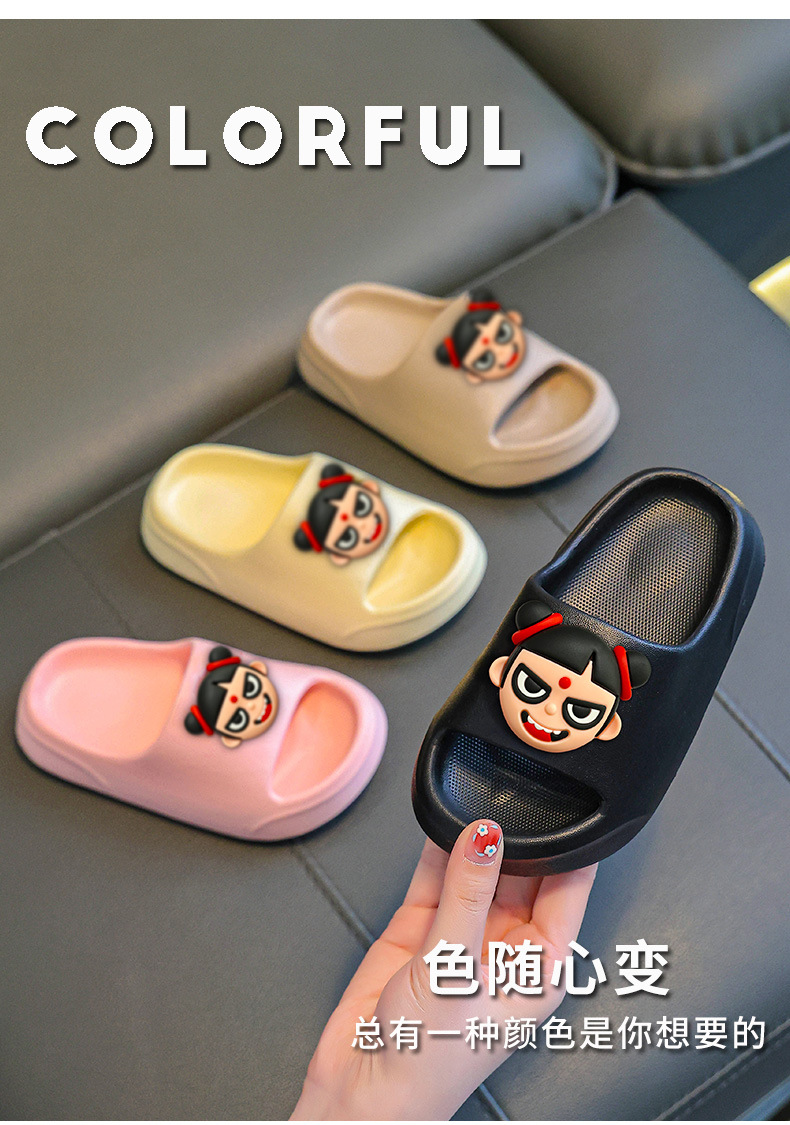 Nezha pantuflas zapatillas para niños verano nuevo estilo dibujos animados fondo suave interior bebé zapatos de playa sandalias
