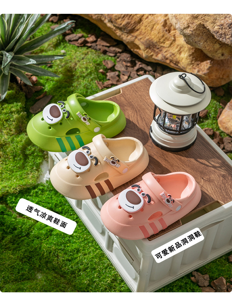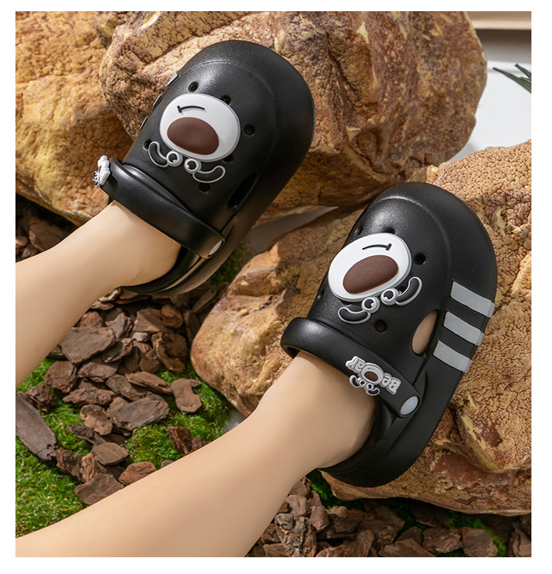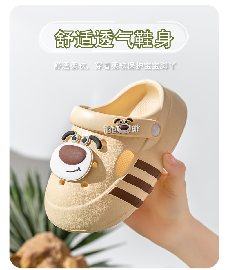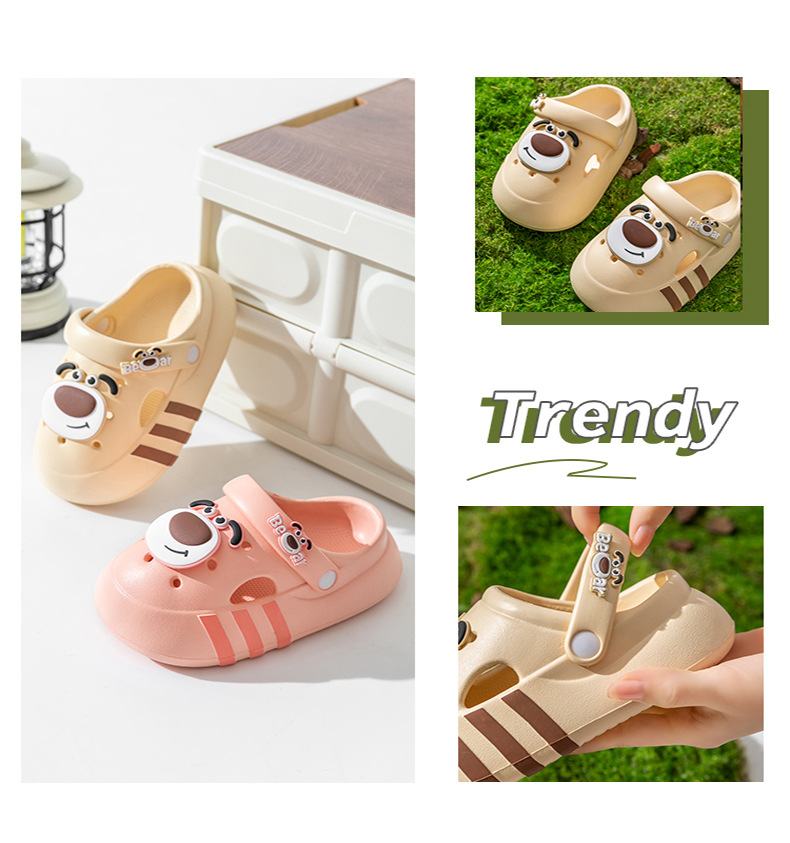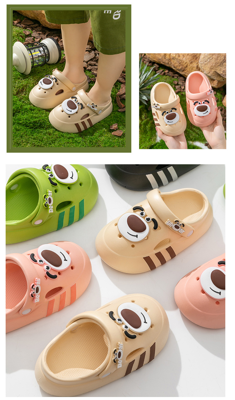 Niños de verano niñas interior zapatillas de baño para niños con base suave antideslizante dibujos animados EVA osos pequeños zapatos agujero