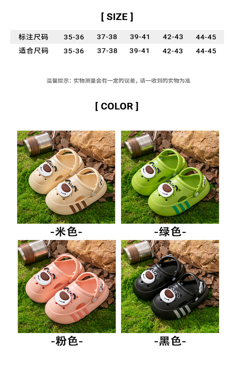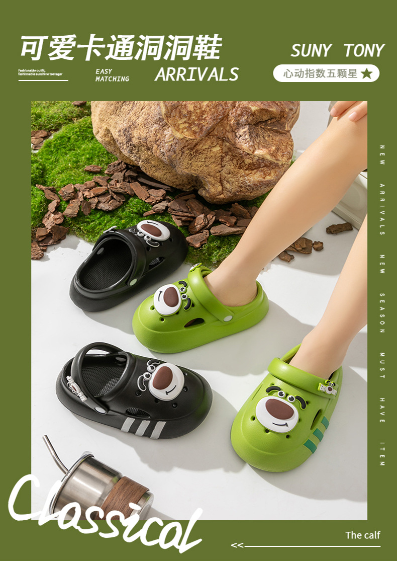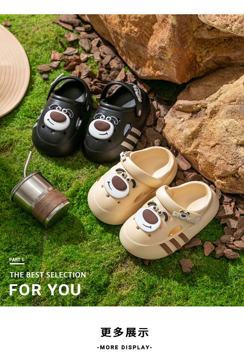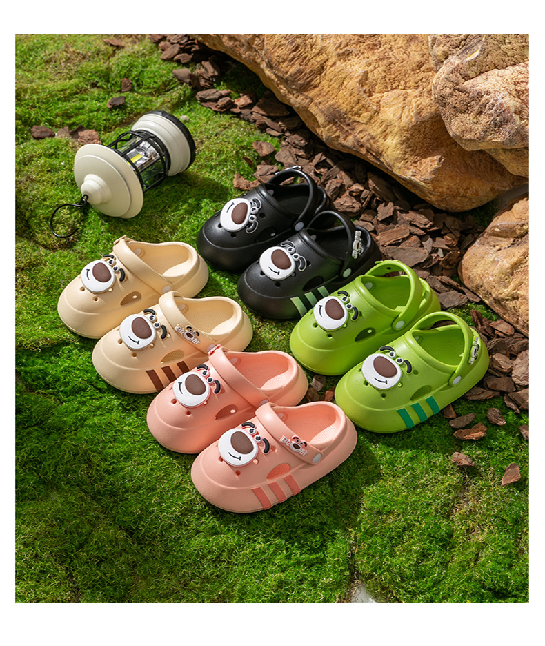 Niños de verano niñas interior zapatillas de baño para niños con base suave antideslizante dibujos animados EVA osos pequeños zapatos agujero