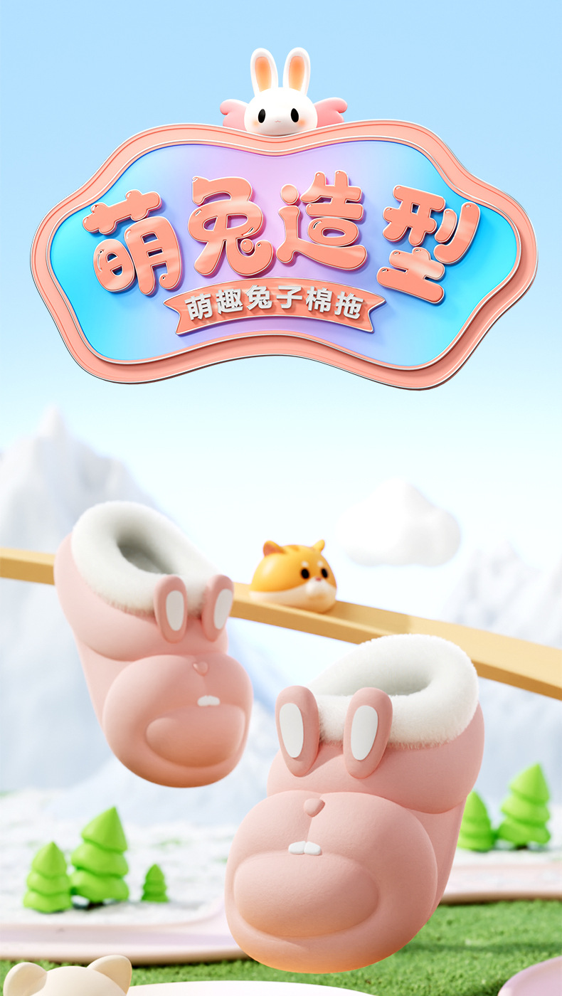 Zapatillas de algodón para niños otoño e invierno lindo conejo niñas forradas de vellón extraíbles y lavables zapatillas pequeñas medianas y grandes para niños zapatillas de algodón para niñas
