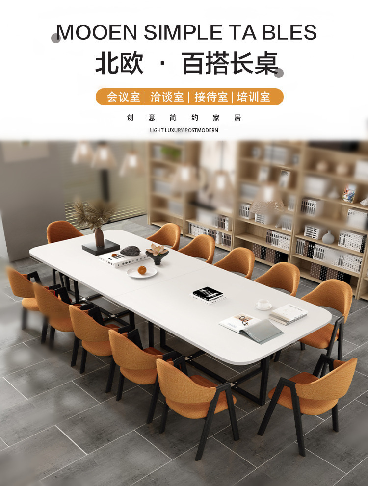 Mesa y silla de reunión moderna simple sala de estar mesa rectangular sala de lectura biblioteca mesa larga