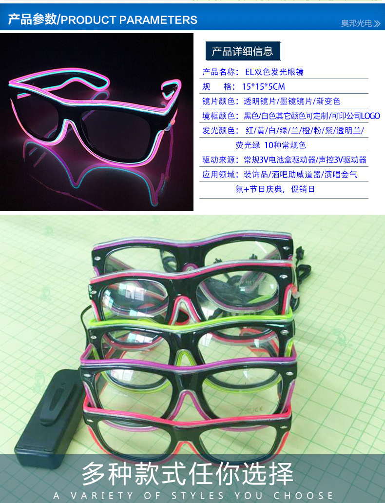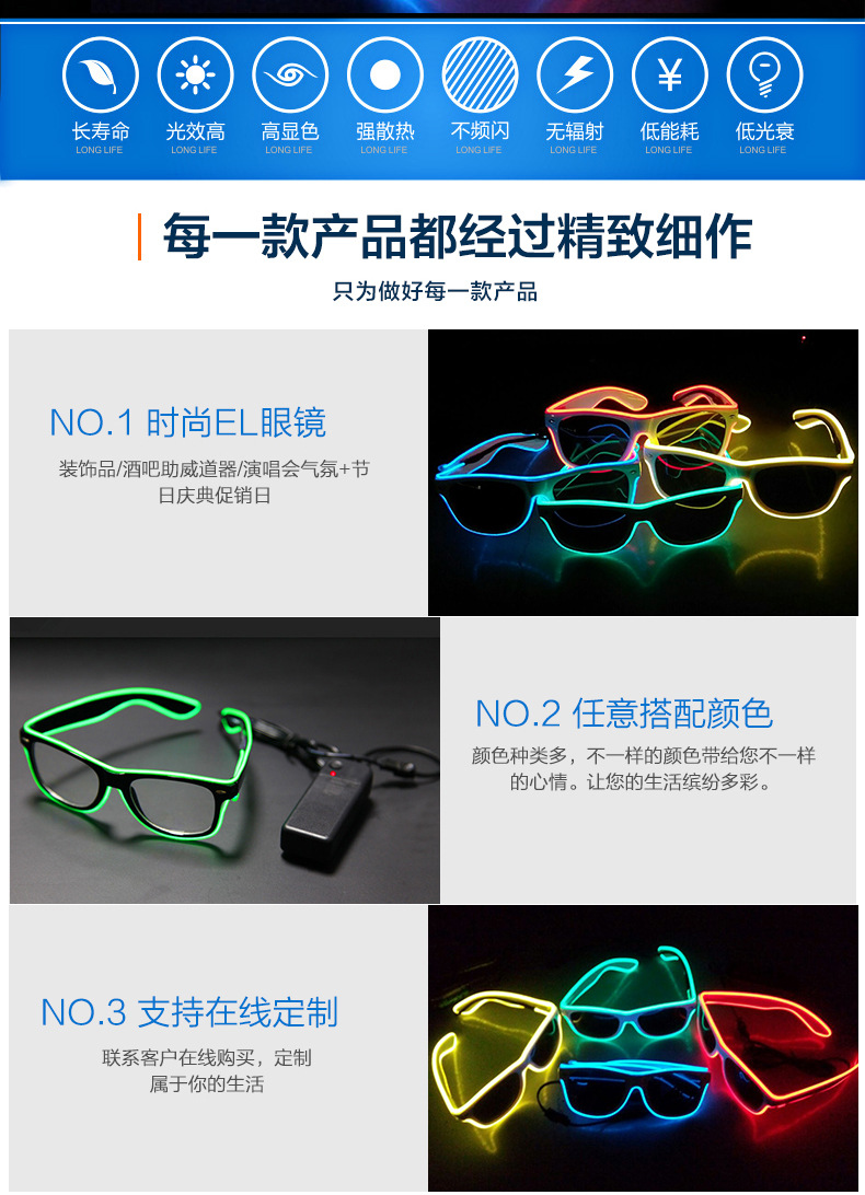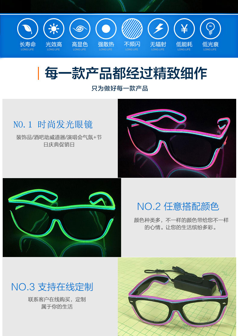 | Color | Las gafas luminosas de lei Peng son opcionales en diez colores. |