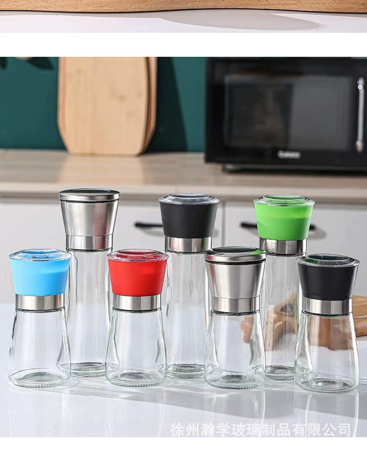 Venta al por mayor manual japonés hogar de acero inoxidable molinillo de pimienta vidrio suministros de cocina artefacto tanque de condimento portátil