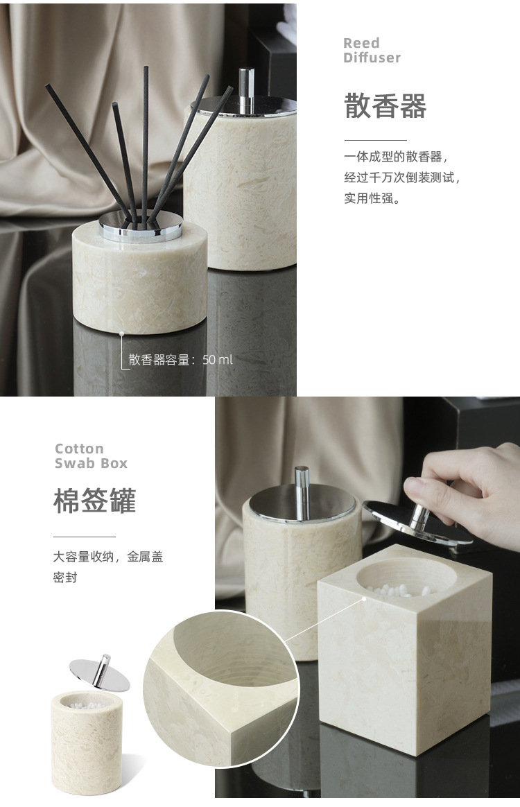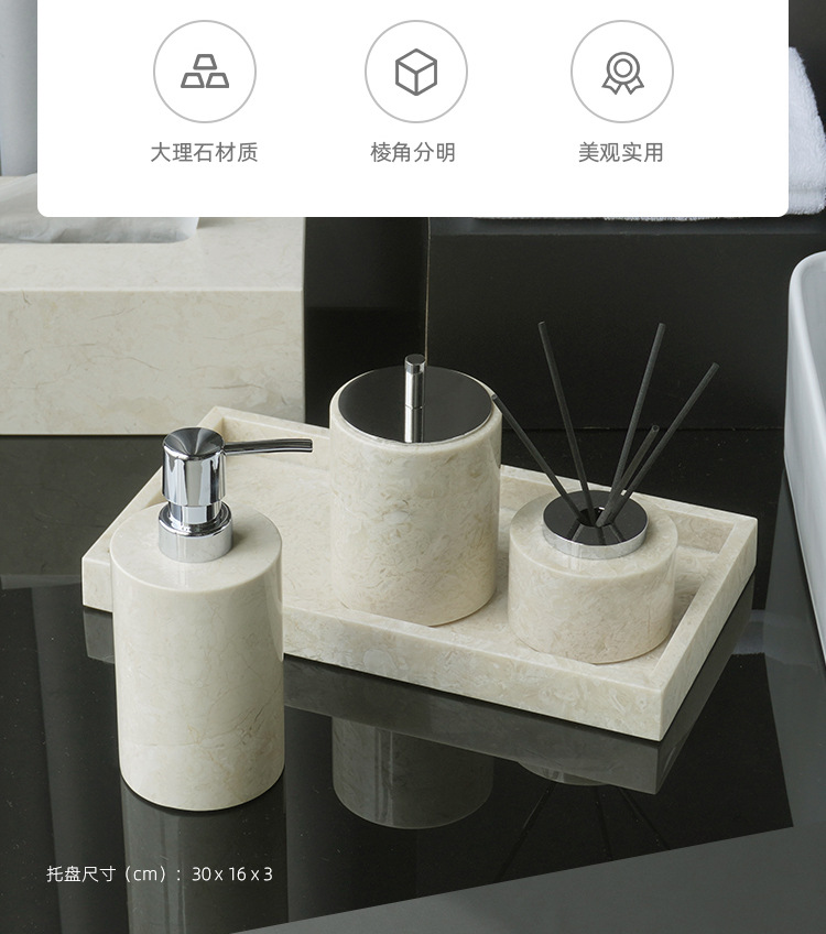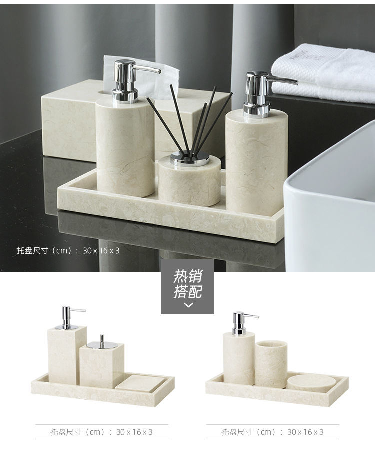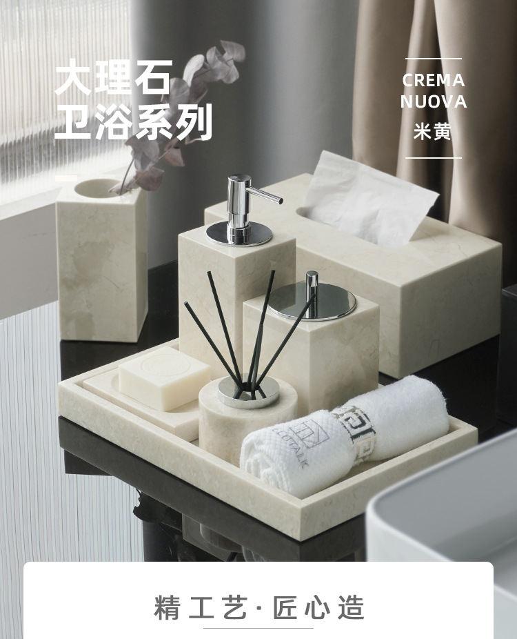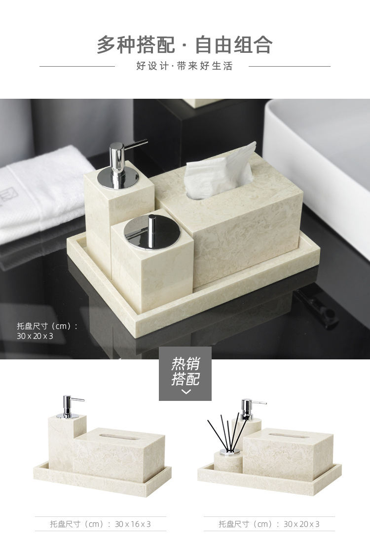 DecoTalk mármol beige baño set de baño crema viento baño perfumado caja de toallas bandeja decoración