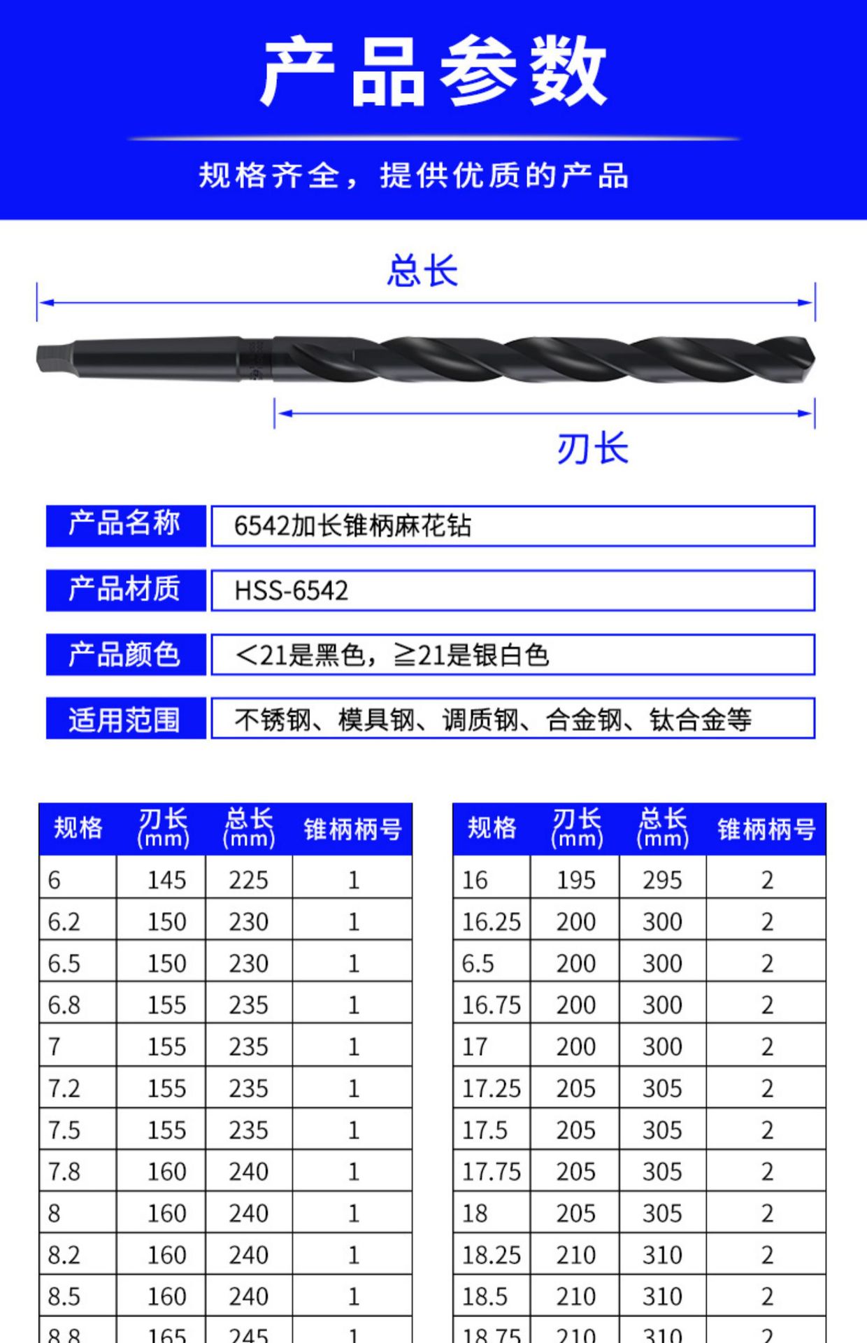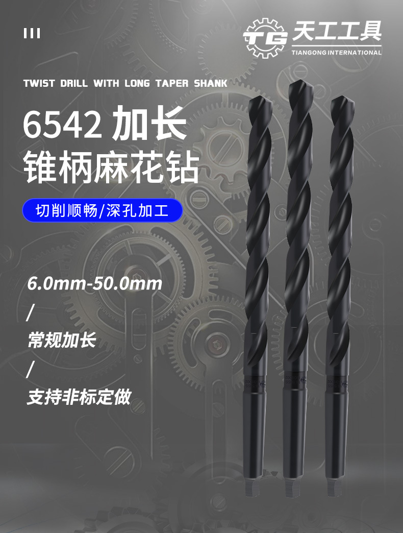 6542 taladro de acero de alta velocidad de acero inoxidable taladro de cono alargado especial taladro eléctrico de cono Morse extra largo