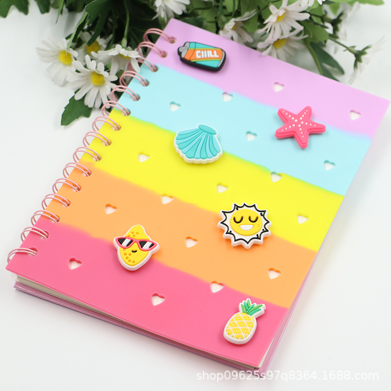 DIY silicona botón de bobina de hoja de cartón lindo libro de dibujos animados de playa marina cuadernos de notas de estudiantes accesorios de PVC