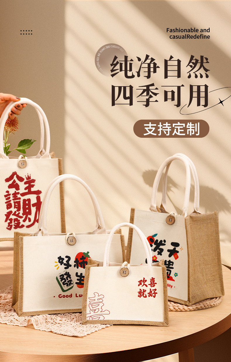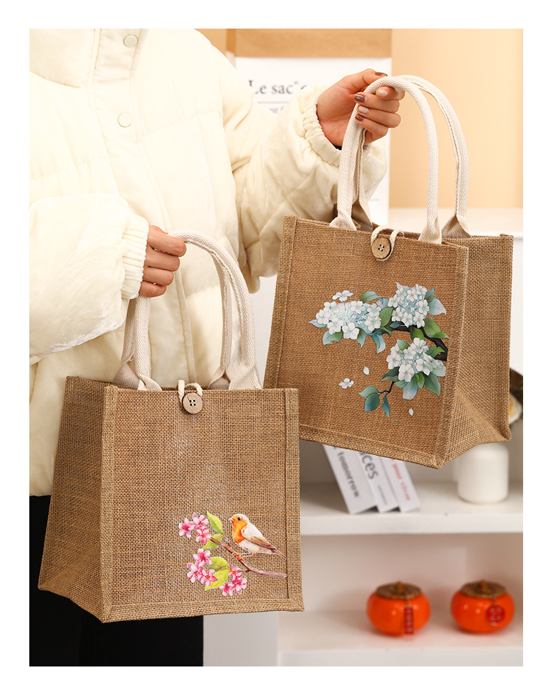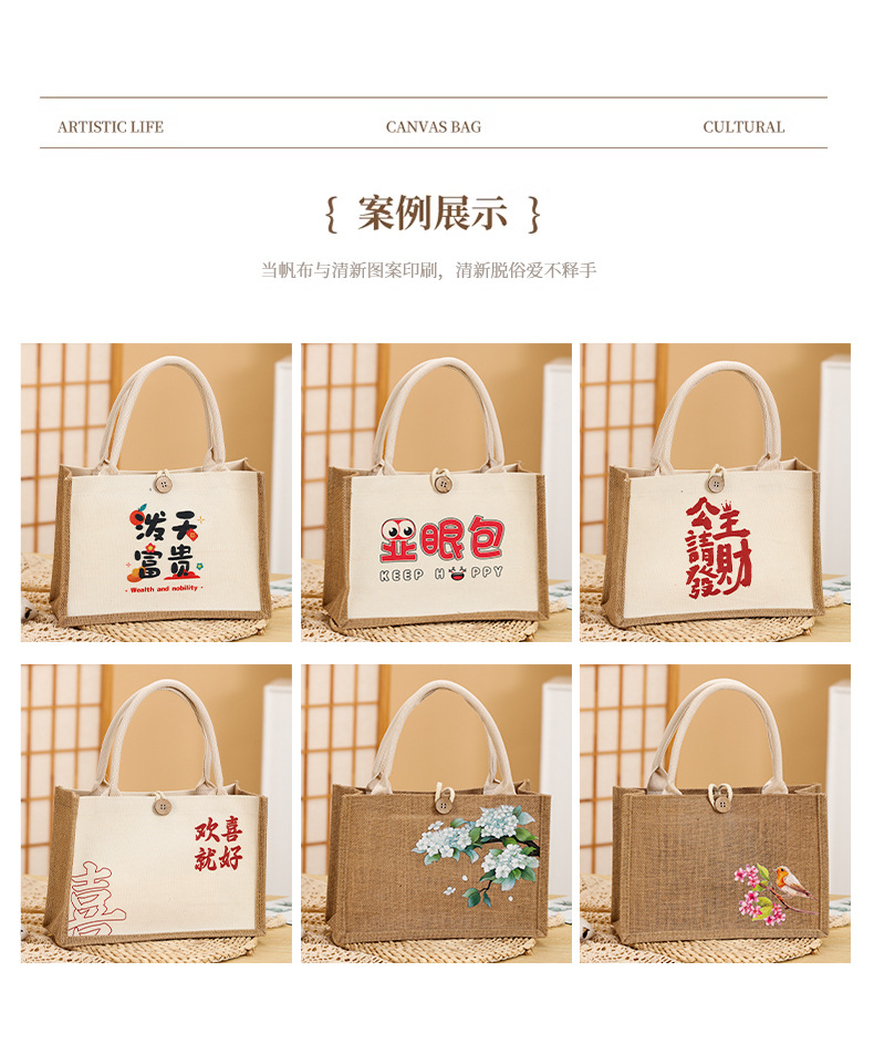 Nuevo bolso de lino estudiante caja de almuerzo ropa de protección del medio ambiente compras bolso ojo bolsa de lino bolso de lona