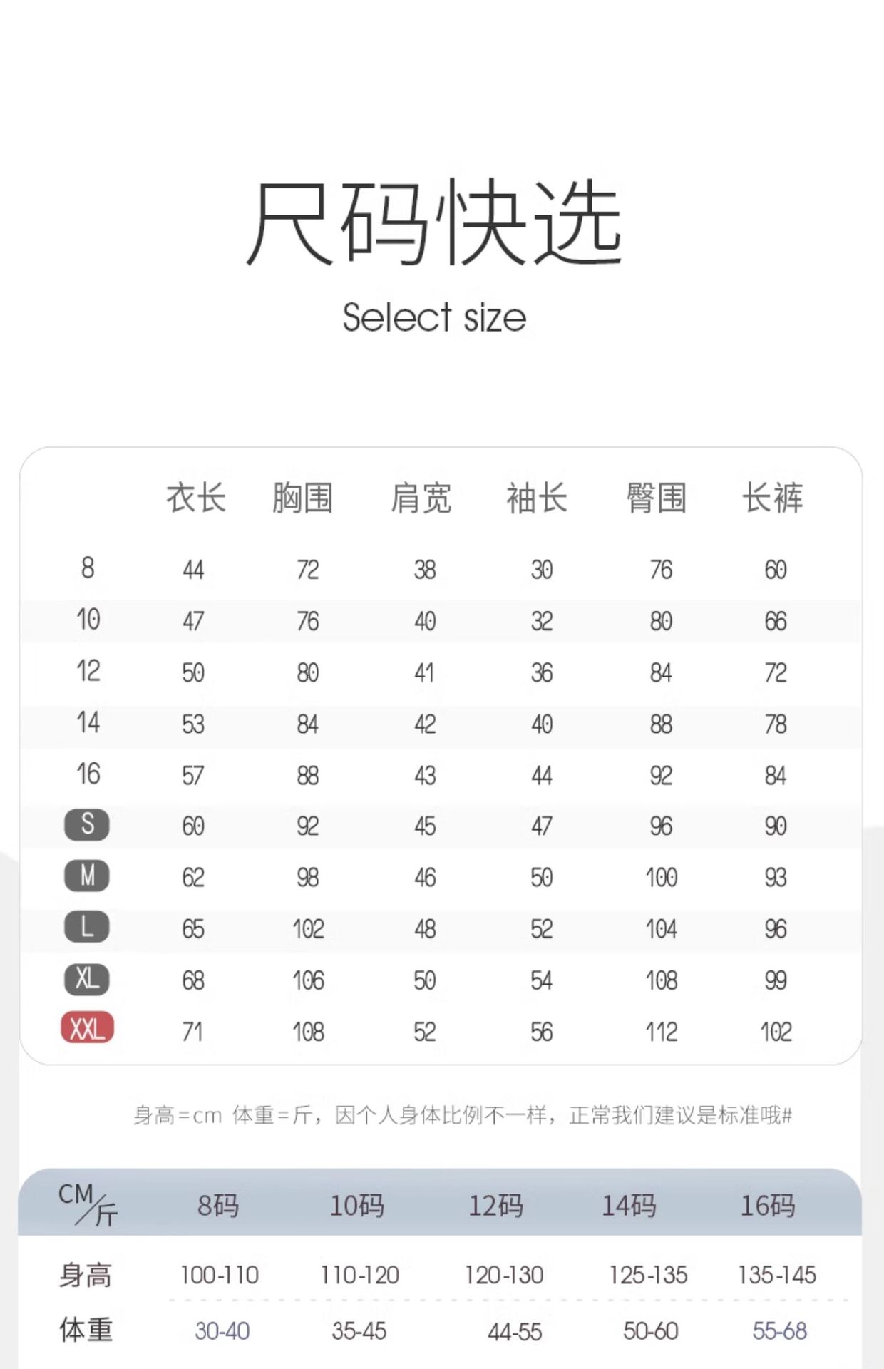 [código s] altura 145 - 155cm y peso 68 - 85 kg