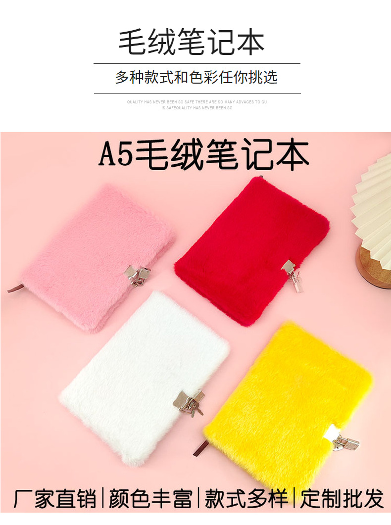 Cuaderno de Peluche con Candado y Bolígrafo, Agenda de Tela Simple y Linda, Agenda de Premios para Estudiantes, Diario de Peluche con Candado
