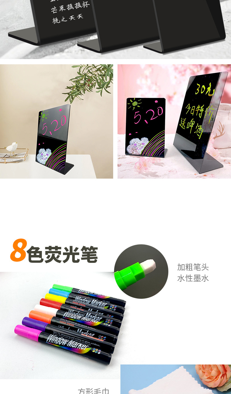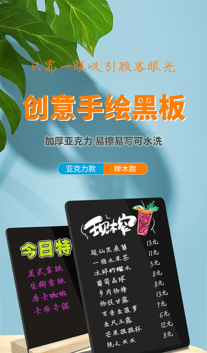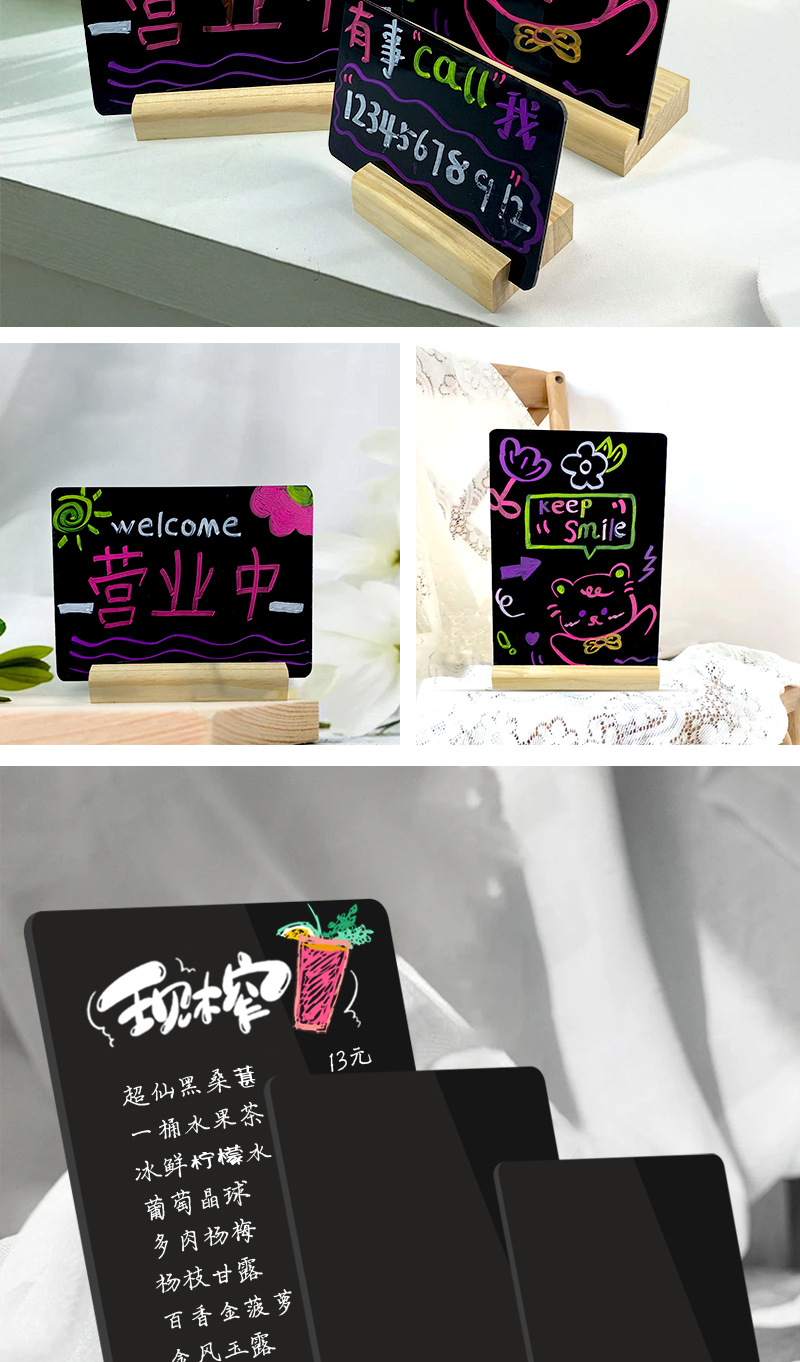 Pizarra pequeña manuscrita con menú de cartelera para puestos, marca de exhibición del mercado nocturno, lista de precios de la tienda de té con leche, barra de barra de PVC