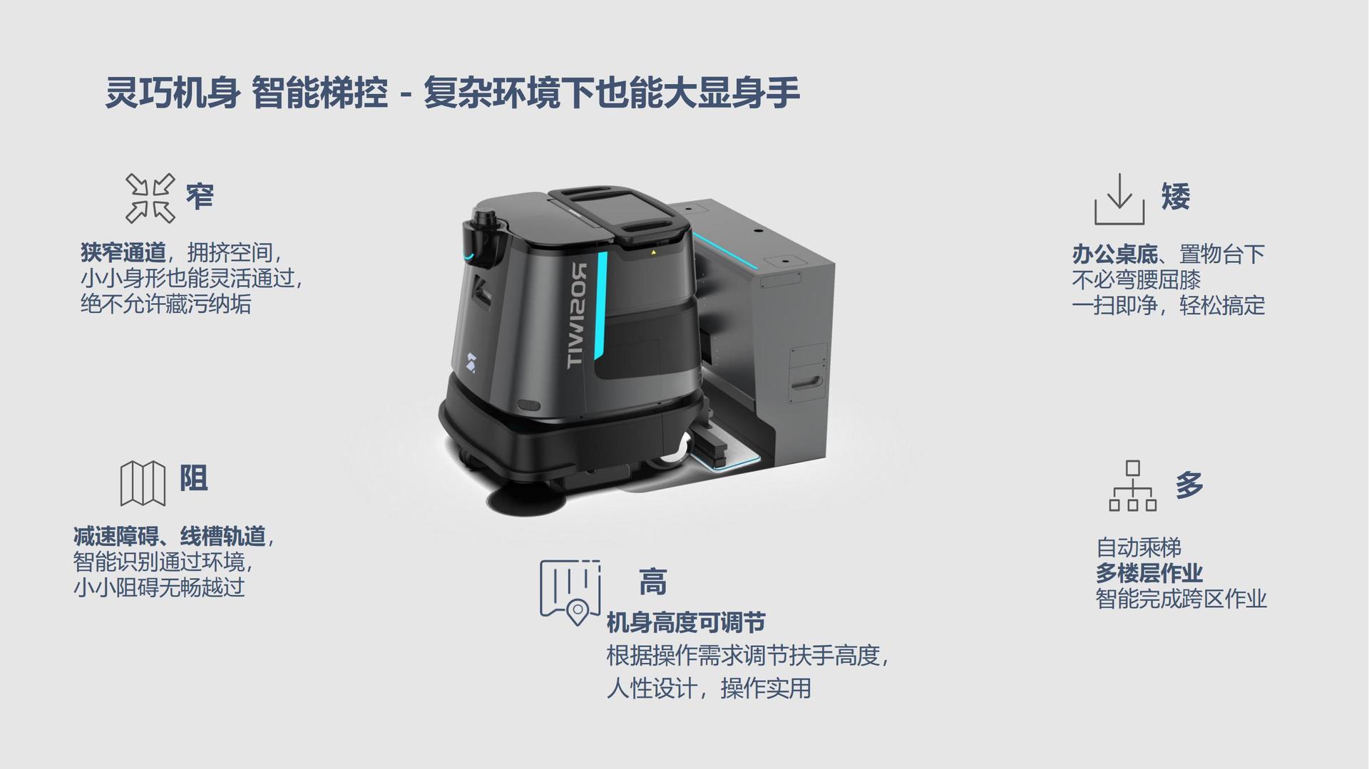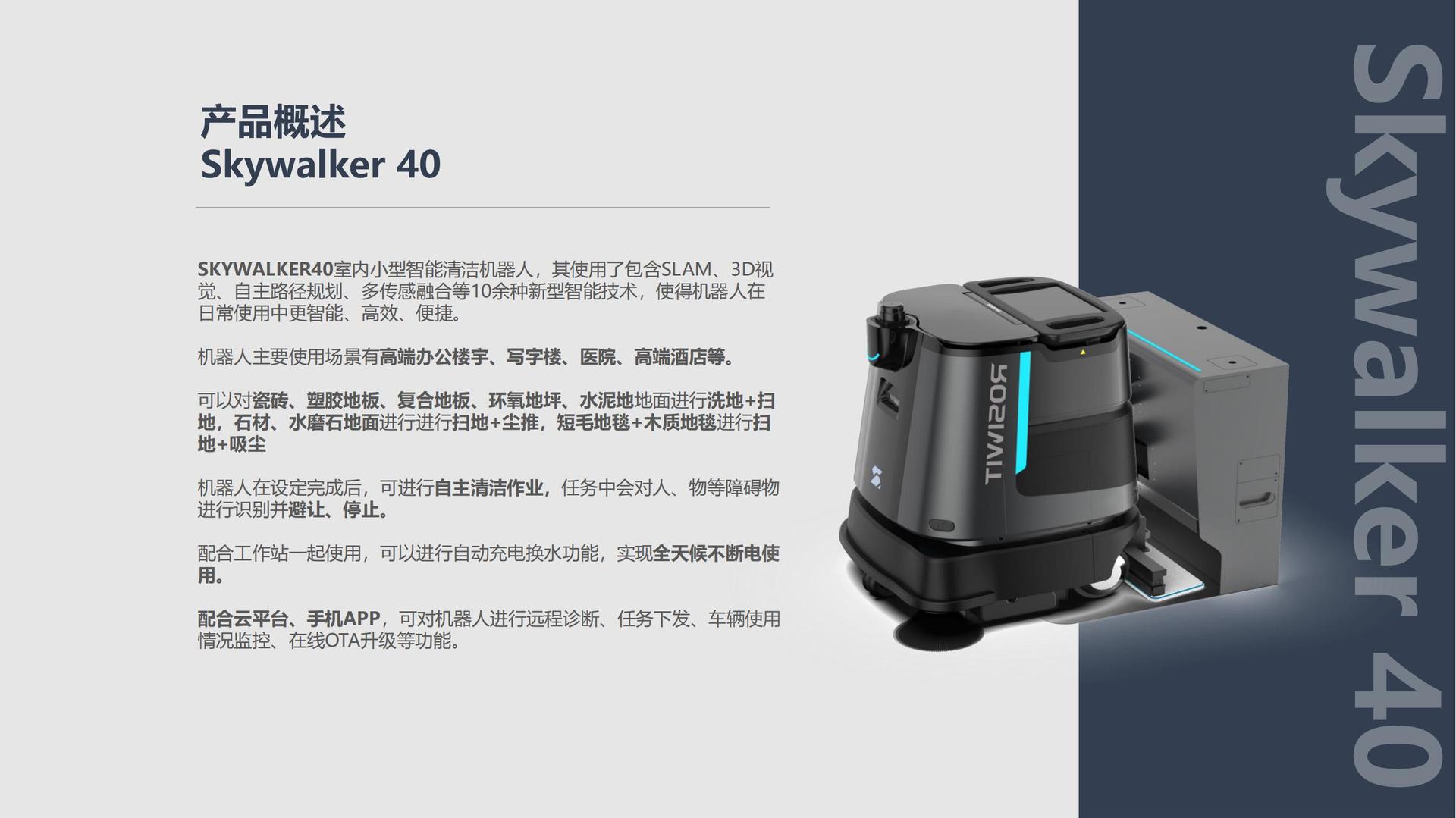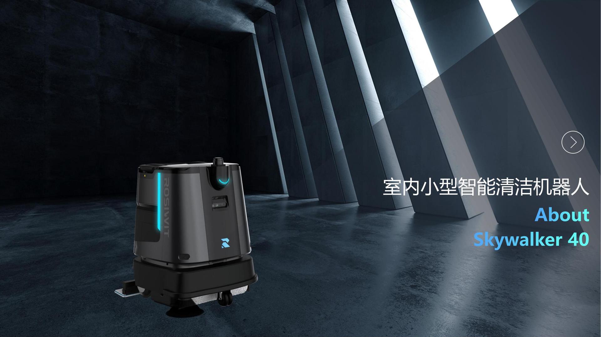 Edificios de oficinas, hospitales, hoteles, escenas múltiples limpieza interior, limpieza de suelo, lavado de suelo, empuje de polvo en un robot SK40