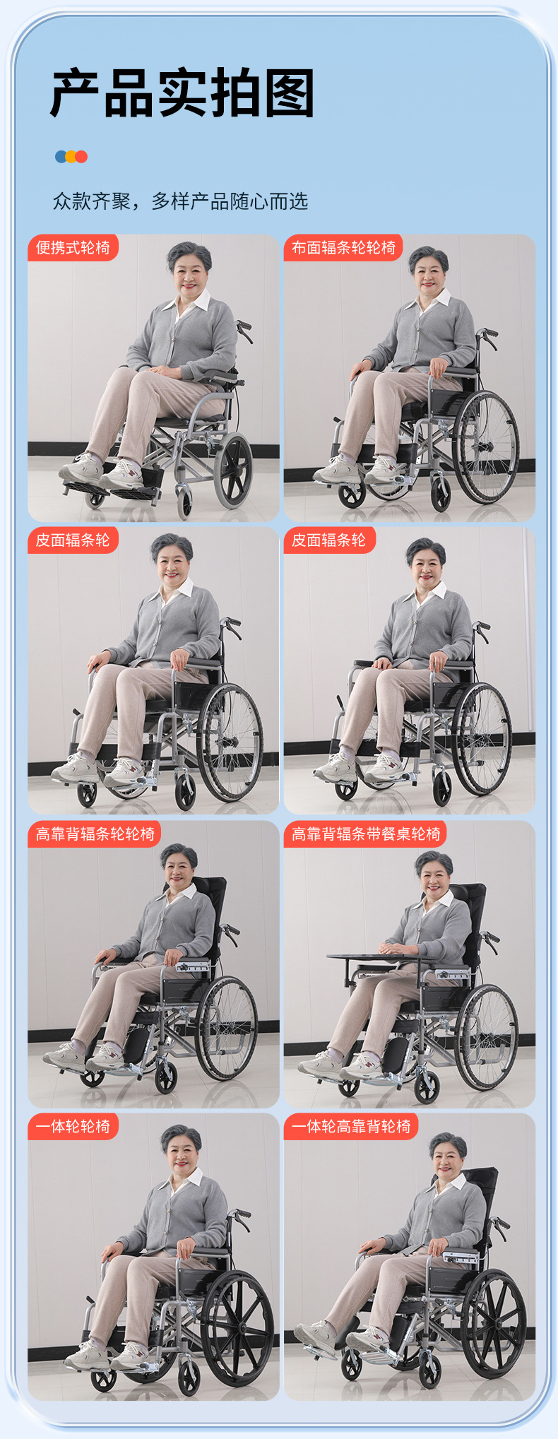 | Número de artículo | Rueda todo en uno plegable de 1,16 pulgadas,2,16 pulgadas pueden levantar apoyabrazos y piernas,3. Rueda de radios de tela oxford doble suave,4. Rueda de tiras de inodoro de tela Oxford,5. Rueda todo en uno de tela Oxford,6. Estante de tela Oxford --- cojín flotante de malla,Silla de ruedas para niños plegable de 7,20 pulgadas,8. Rueda de radios de ajuste mecánico de seis velocidades con respaldo alto,9. Rueda de radios de ajuste hidráulico de respaldo alto |