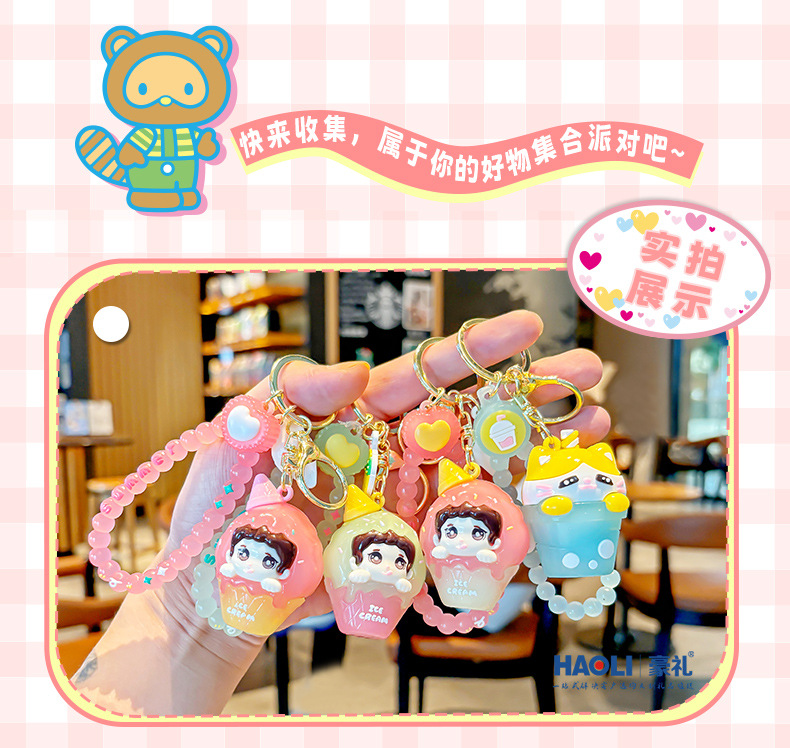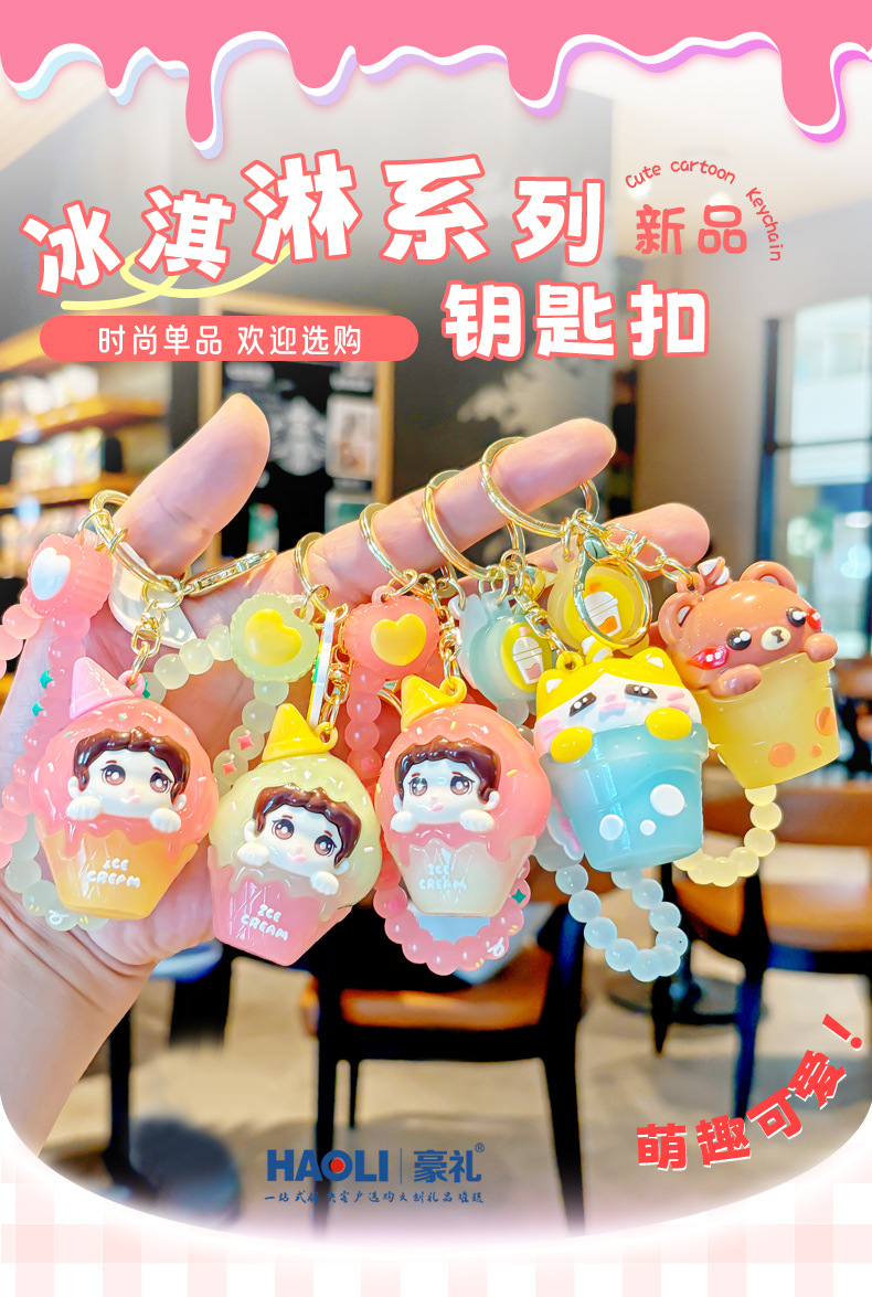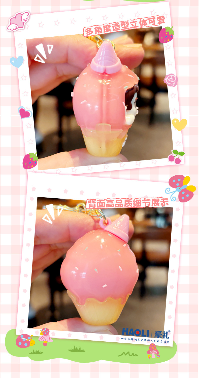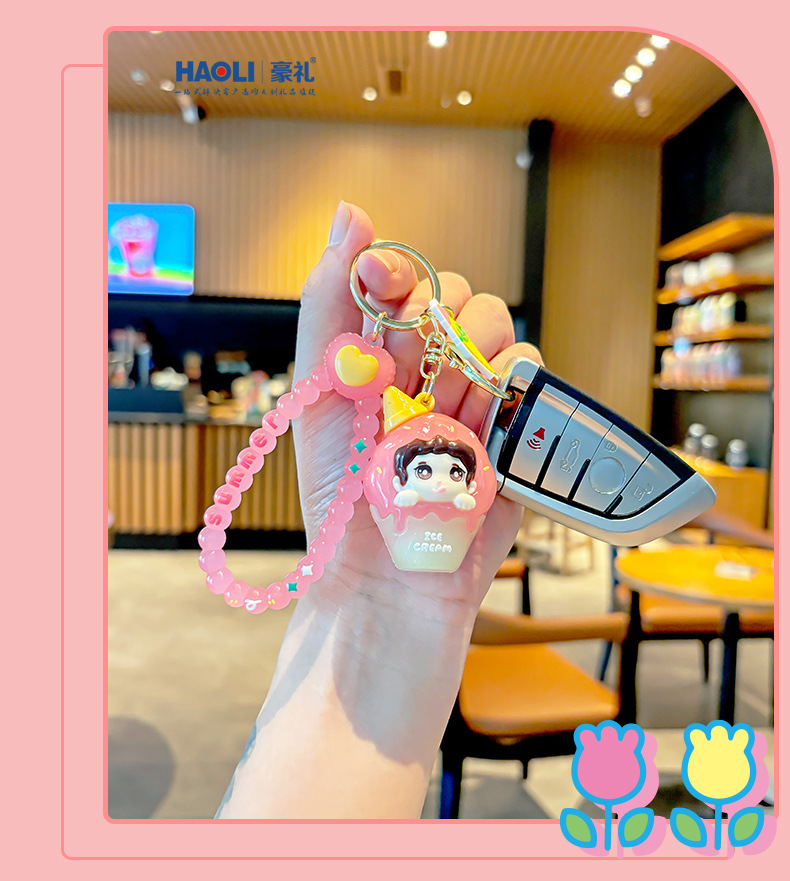 Creativo doble helado niño llavero exquisito lindo muñeco de dibujos animados bolso de escuela de estudiante colgante pequeño regalo masculino