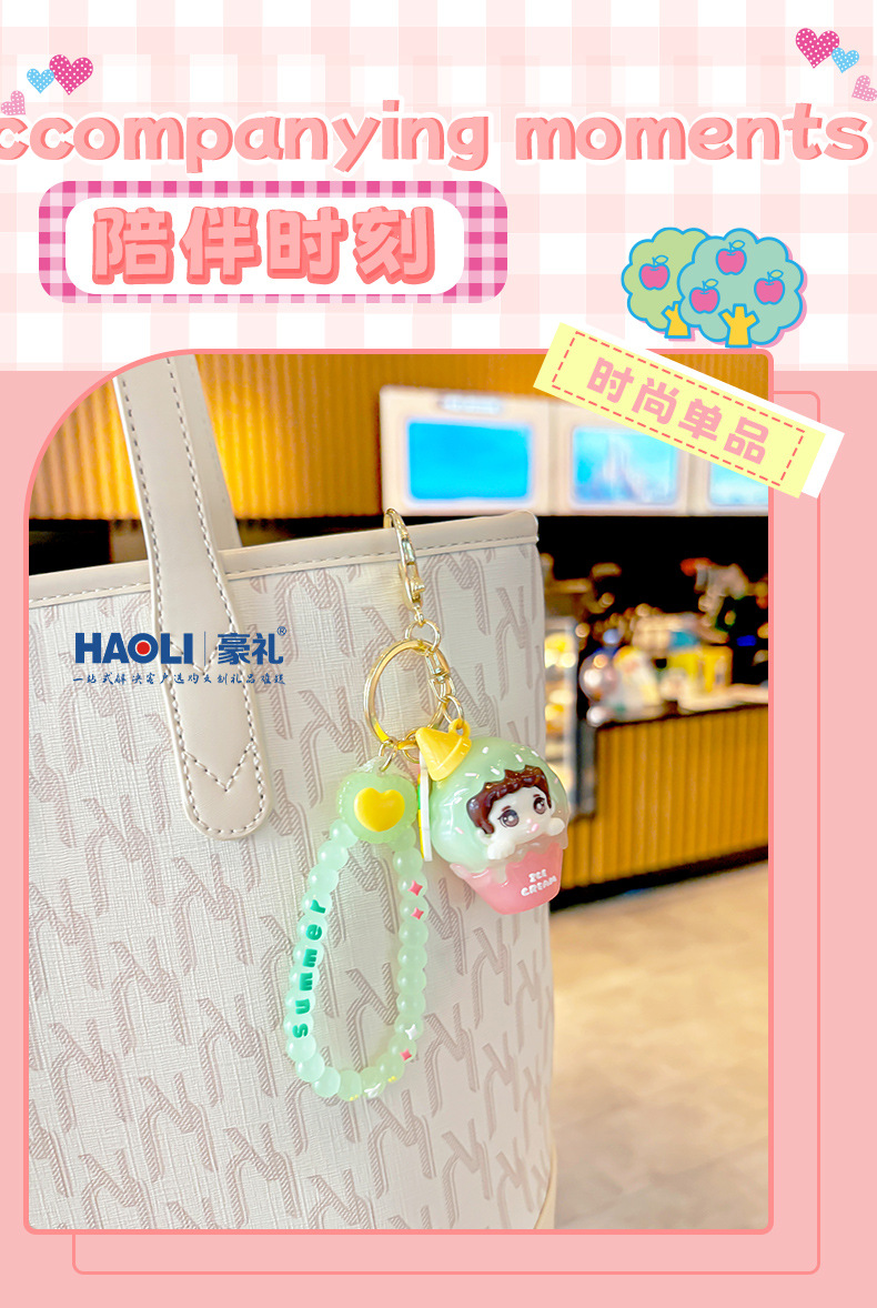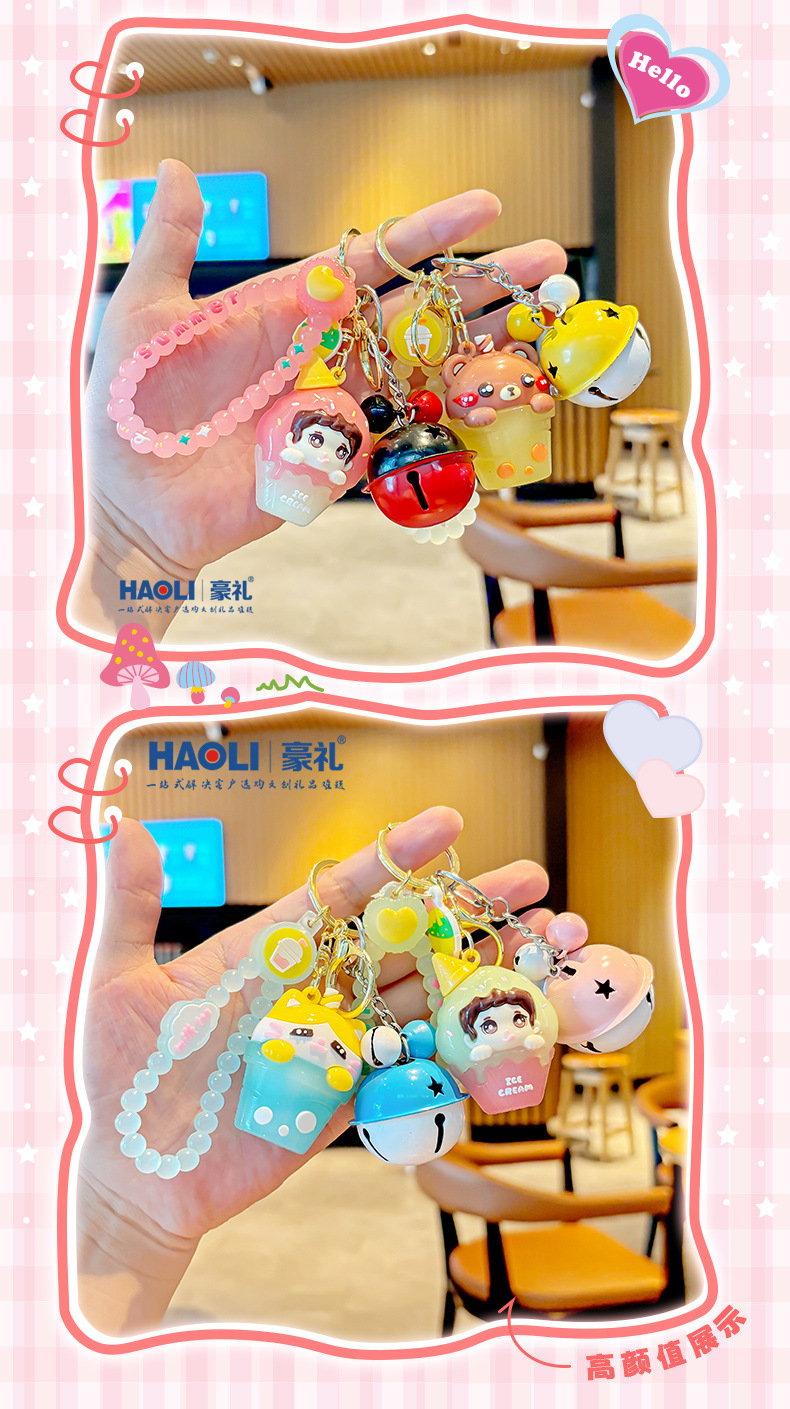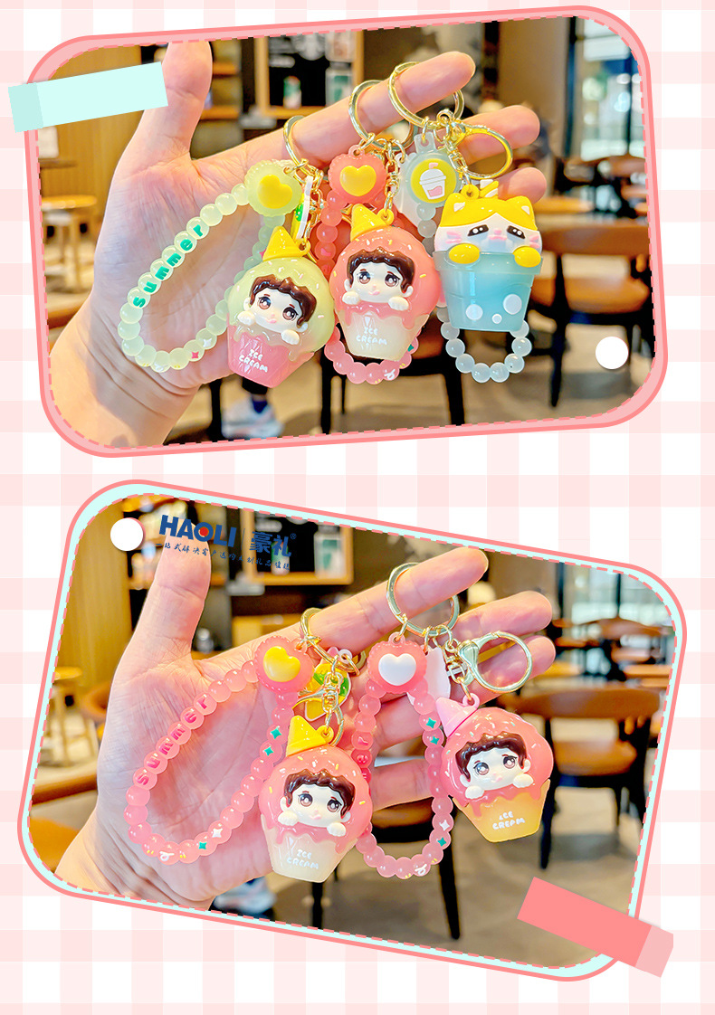 Creativo doble helado niño llavero exquisito lindo muñeco de dibujos animados bolso de escuela de estudiante colgante pequeño regalo masculino