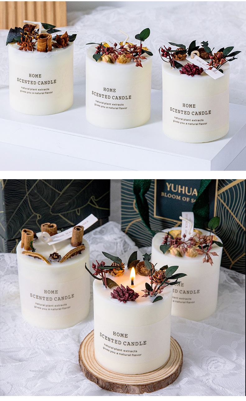 Mori flor seca aromaterapia vela al por mayor hecha a mano de cera de soja fragancia decoración romántica libre de humo incienso regalo