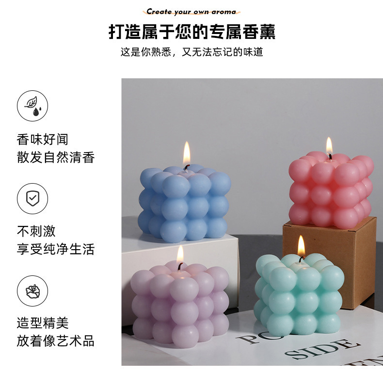Cubo transfronterizo de aromaterapia vela al por mayor hogar simple decoración ins viento neto burbuja roja forma regalo de mano fragancia