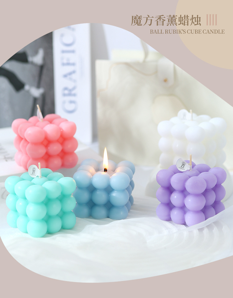 Cubo de Rubik aromaterapia vela forma cera macaron decoración regalo de cumpleaños regalo al por mayor cera de soja creativa