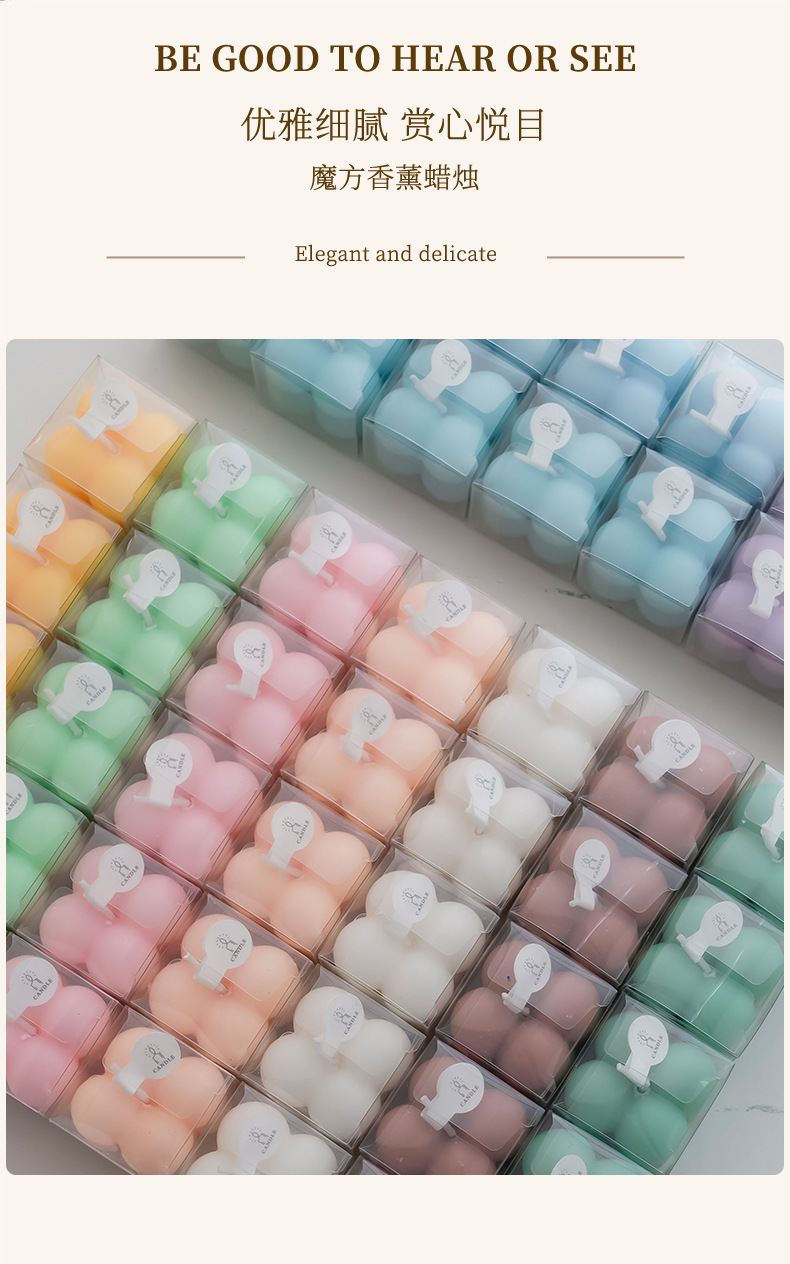 | Tipo fragante | Morado (romance morado), rosa (oolong melocotón blanco), verde claro (salvia y sal marina), azul (campana azul), rosa tierno (chica berlín), blanco lechoso (cangrejo de pera inglés), amarillo (manzanilla) |
