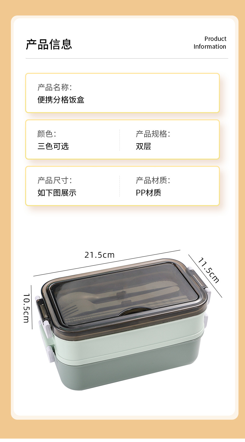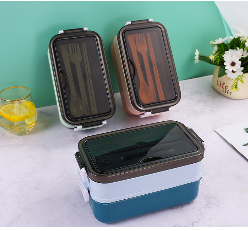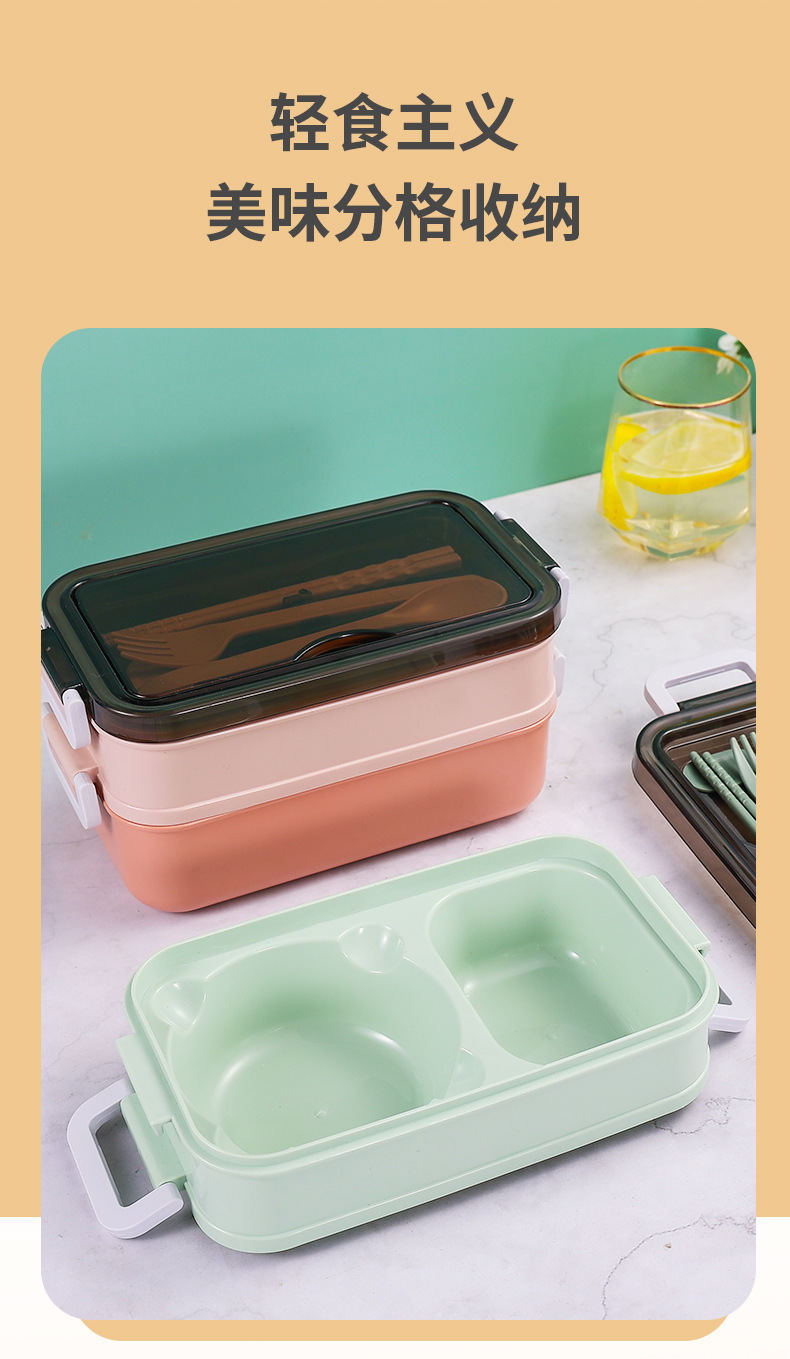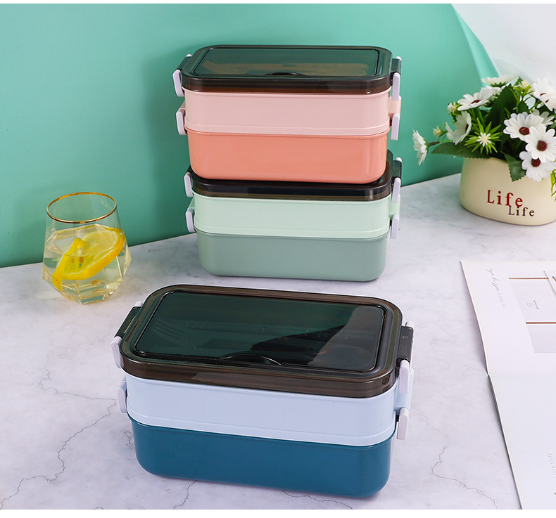 Fiambrera de plástico de doble capa, fiambrera dividida para estudiantes, lonchera de gran capacidad, lonchera portátil para exteriores, caja de conservación sellada