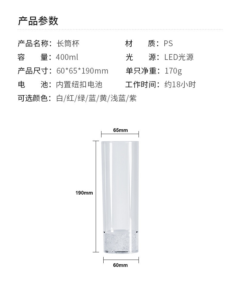 | Color | Vasos largos en un solo paquete (coloreado + flash), nuevos vasos de champán (en un solo paquete azul), nuevos vasos de champán (en un solo paquete rojo), nuevos vasos de champán (en un solo paquete naranja), nuevos vasos de champán (en un solo paquete naranja), nuevos vasos de champán (en un solo paquete amarillo), [vasos de whisky] luz monocromática roja, [vasos de whisky] luz monocromática azul, [vasos de whisky] luz monocromática amarilla, [vasos de whisky] luz monocromática verde, [vasos de whisky] luz monocromática naranja, [vasos de whisky] luz monocromática púrpura rosa |