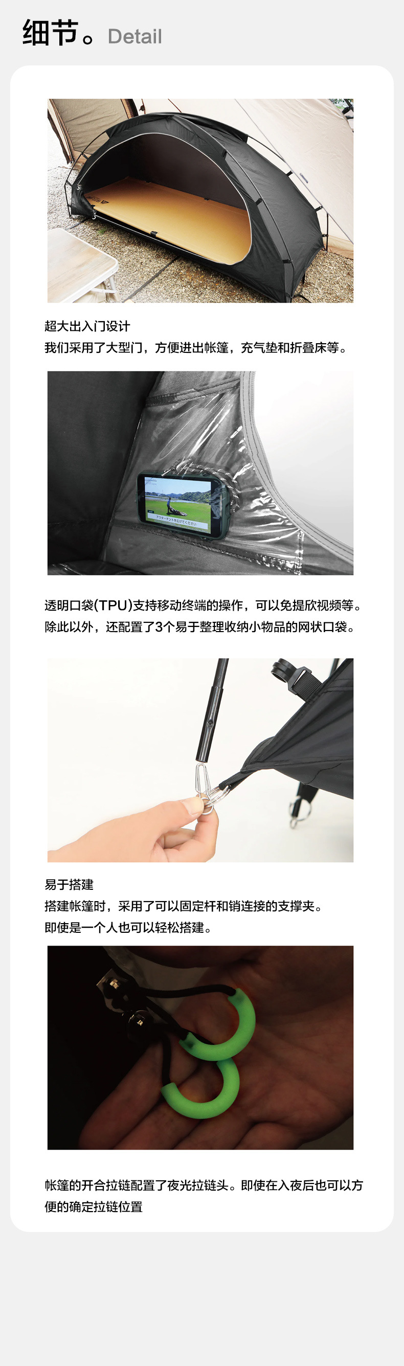 | Color | Tienda de campaña de canguro de cuentas de red de postes de aluminio (solo tienda de campaña, sin cama), tienda de campaña de canguro completamente cerrada de postes de aluminio (solo tienda de campaña, sin cama), tienda exterior para la tienda de canguro (sin cuenta interna, sin cama) sin tienda de canguro |