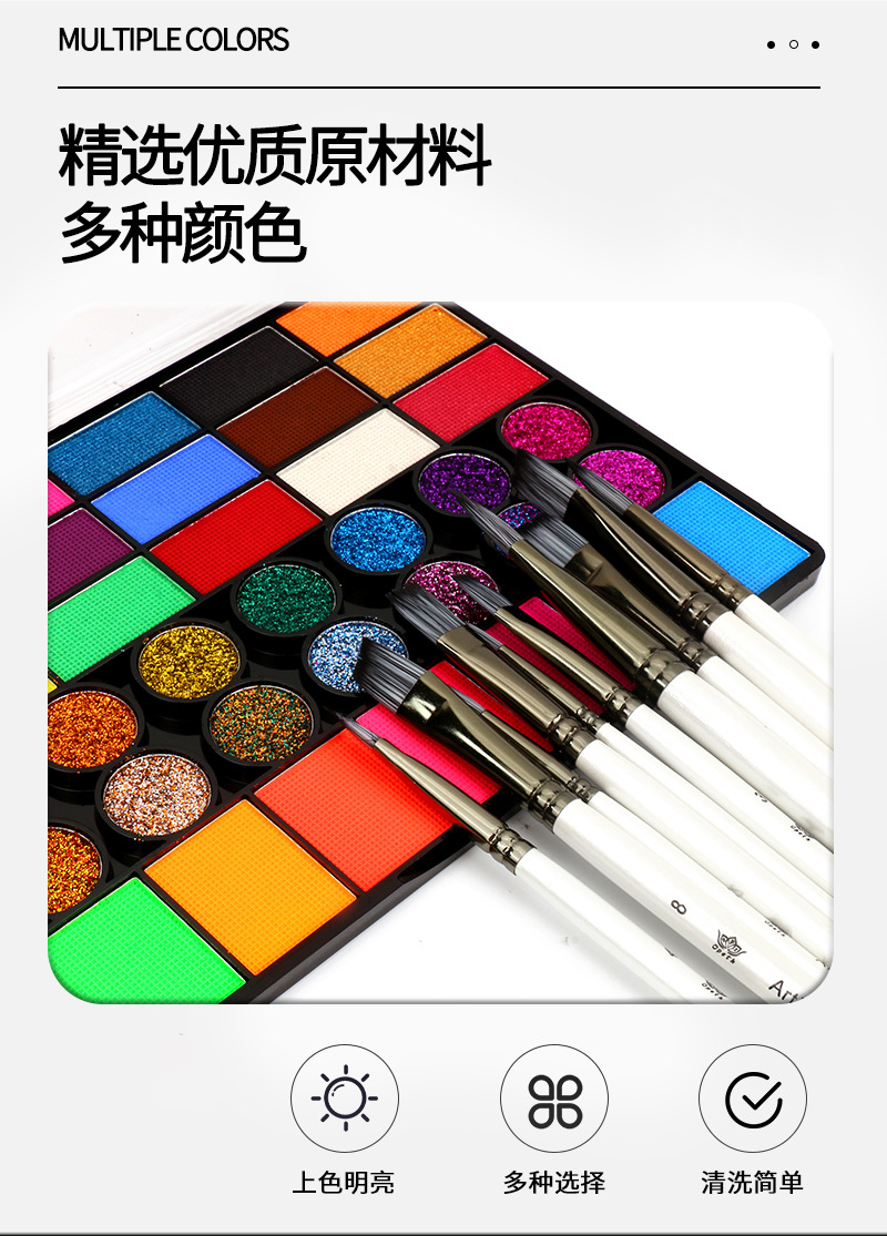42 colores de pintura corporal de pintura facial soluble en agua transfronteriza pintura facial infantil pintura facial ópera de pintura facial