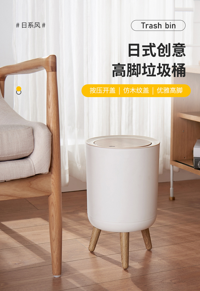 Bote de basura de pie alto creativo de estilo japonés, imitación de plástico, grano de madera, sala de estar, dormitorio, bote de basura de escritorio, canasta de papel simple de gran capacidad