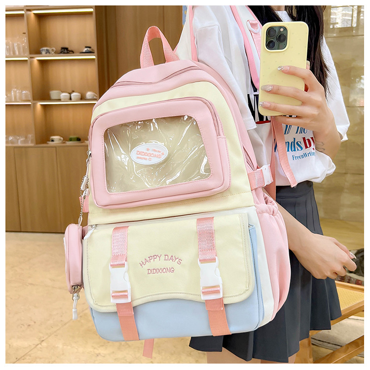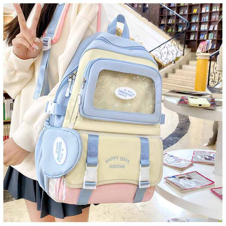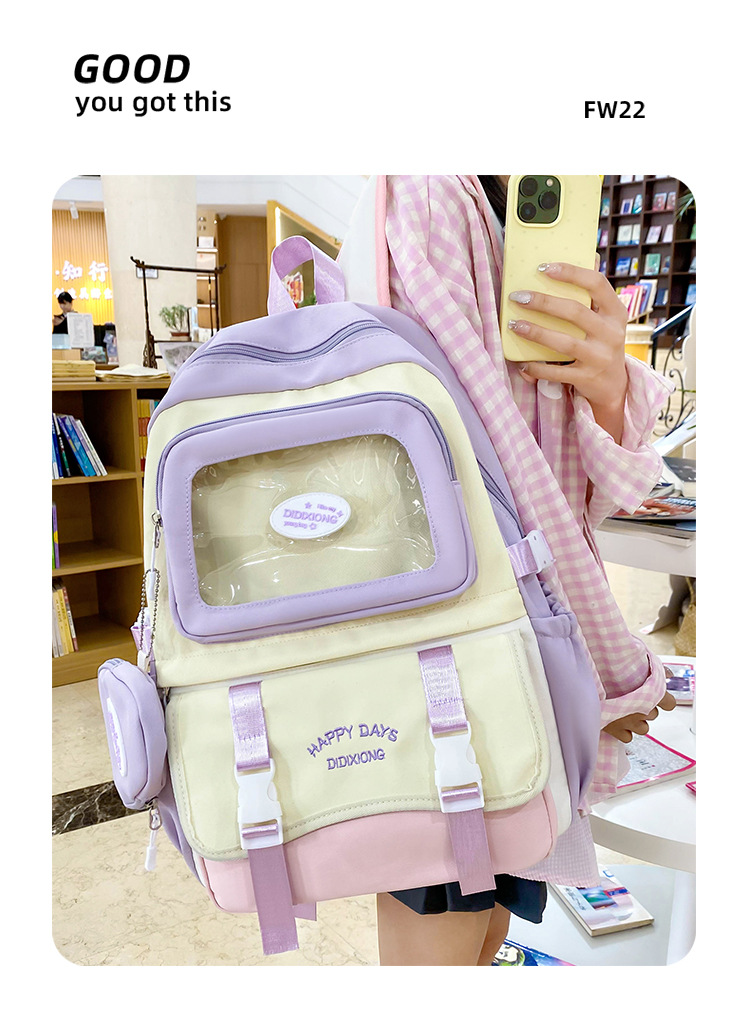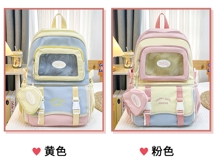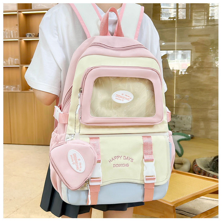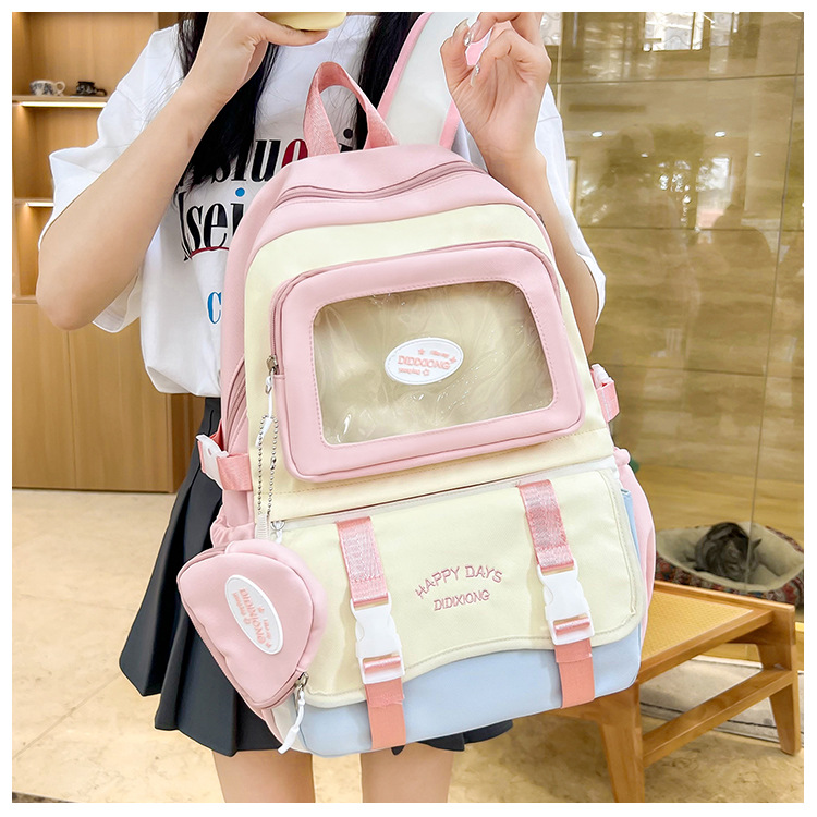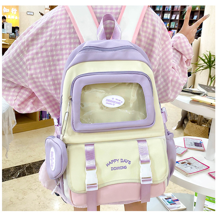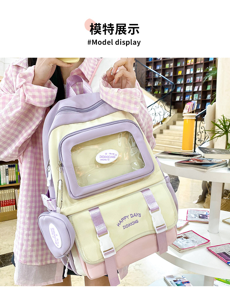 Mochilas escolares para niños, estudiantes de primaria, grados 3-6, mochilas frescas y lindas, estilo dulce, contraste de color, capa transparente, bolsa de dolor