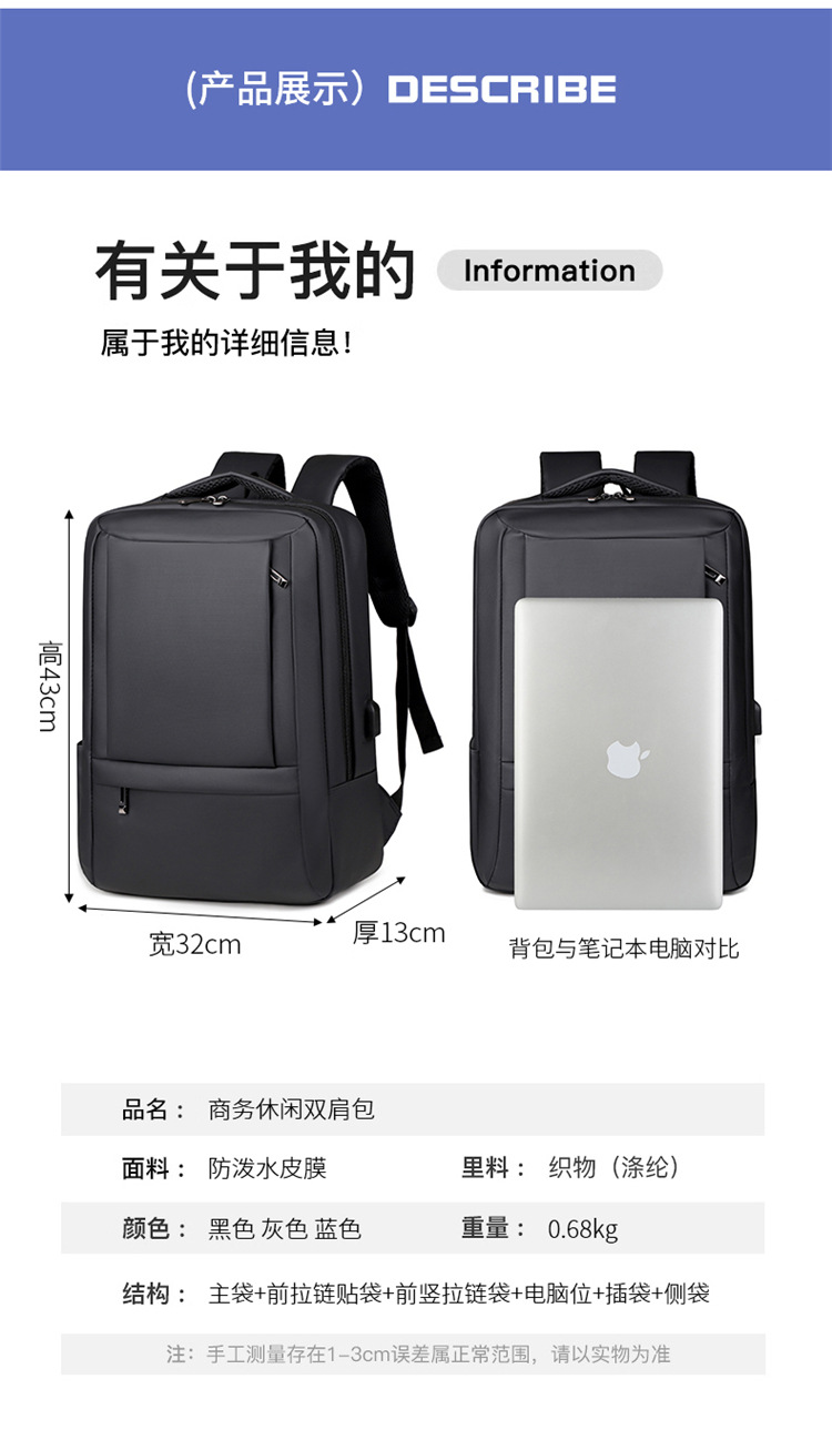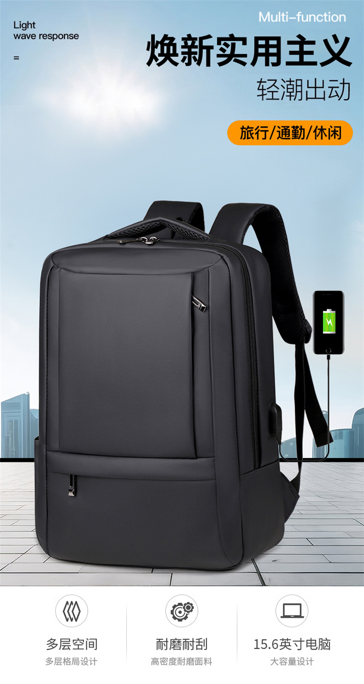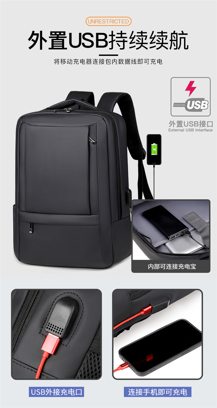 Mochila transfronteriza nueva para hombre, mochila simple recargable USB, mochila de negocios impermeable, bolsa de computadora de viaje de viaje