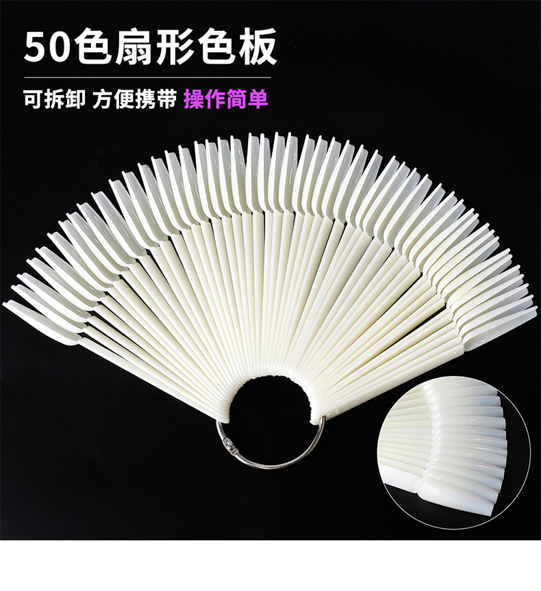 Transfronterizos para tarjetas de manicura, tarjetas de esmalte de manija, 50 piezas con herramientas de tarjetas de color de ventilador de anillo de hierro al por mayor