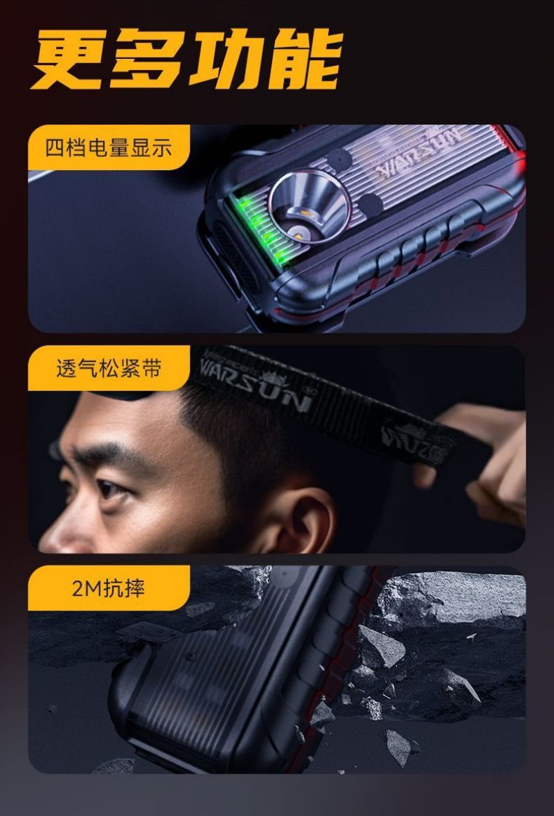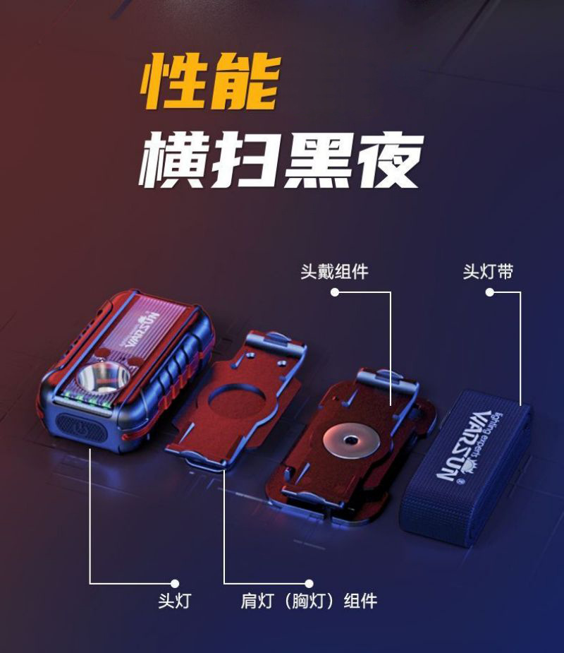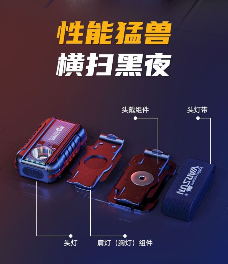 Fabricante de Wolson TD01 faro de advertencia de hombro luz de carga multifuncional luz de alta intensidad super brillante noche pescando faro de inducción