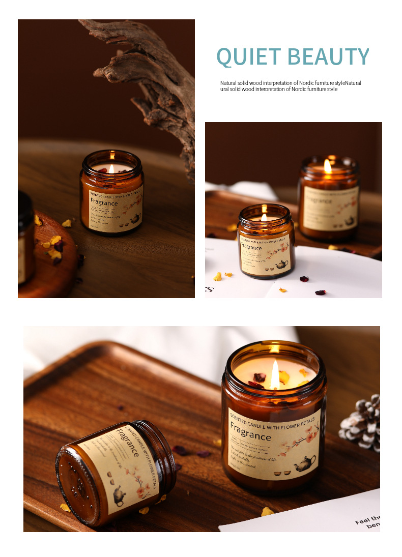 pétalos botella marrón taza de cera de banana cera de soja al por mayor plantas caseras cera de soja aceites esenciales ahumantes fragancia vela regalo de mano