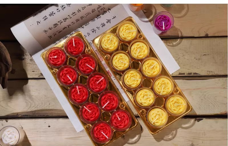 Lámpara de mantequilla de 8 horas Lámpara de mantequilla de larga duración Lámpara budista Lámpara de mantequilla de mantequilla de mantequilla de color rojo en forma de flores