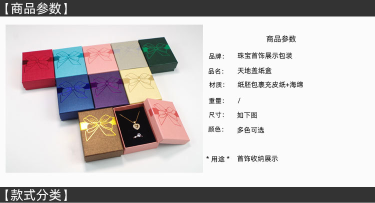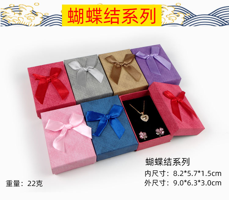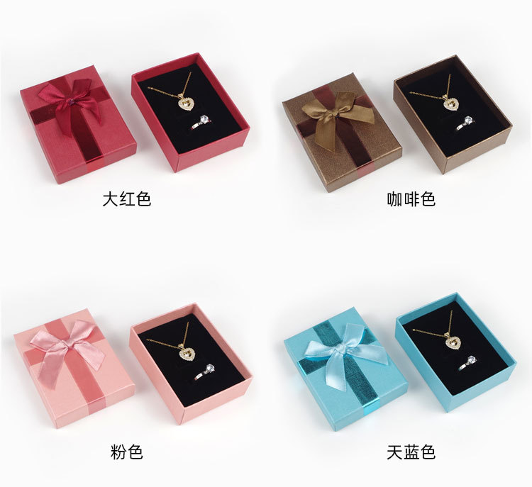 En stock tapa caja de joyería de cartón collar anillo de joyería caja de embalaje de moda arco caja de joyería al por mayor