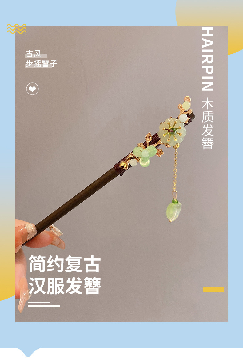 Nueva horquilla de estilo antiguo chino, horquilla de madera femenina, borla, paso a paso, nueva horquilla de estilo chino, horquilla simple