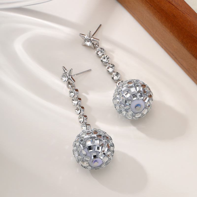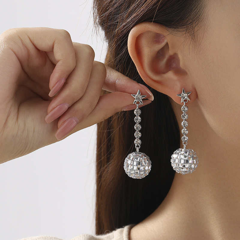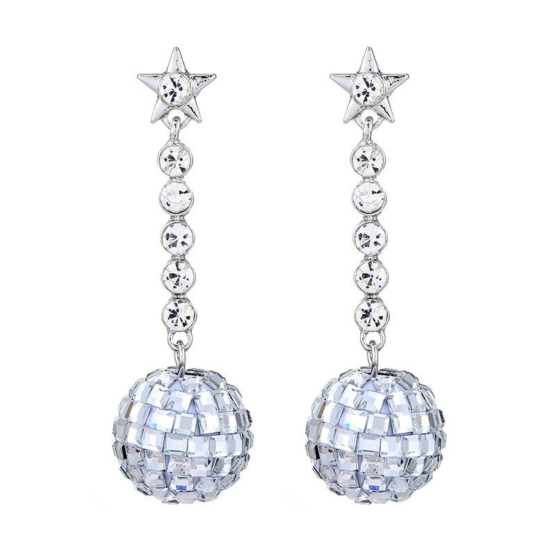 Europa y Estados Unidos transfronterizos estrella de penta zircón discoteca bola de lámpara colgante pernos de orejas de moda para mujeres orejas de boquilla