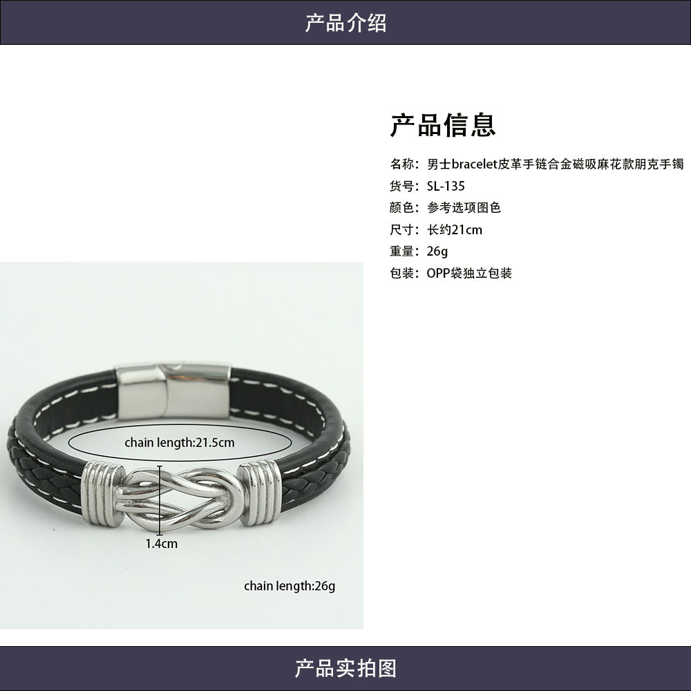 Pulsera de Cercanías de moda europea y americana pulsera de cuero pulsera de aleación magnética torcedura punk pulsera