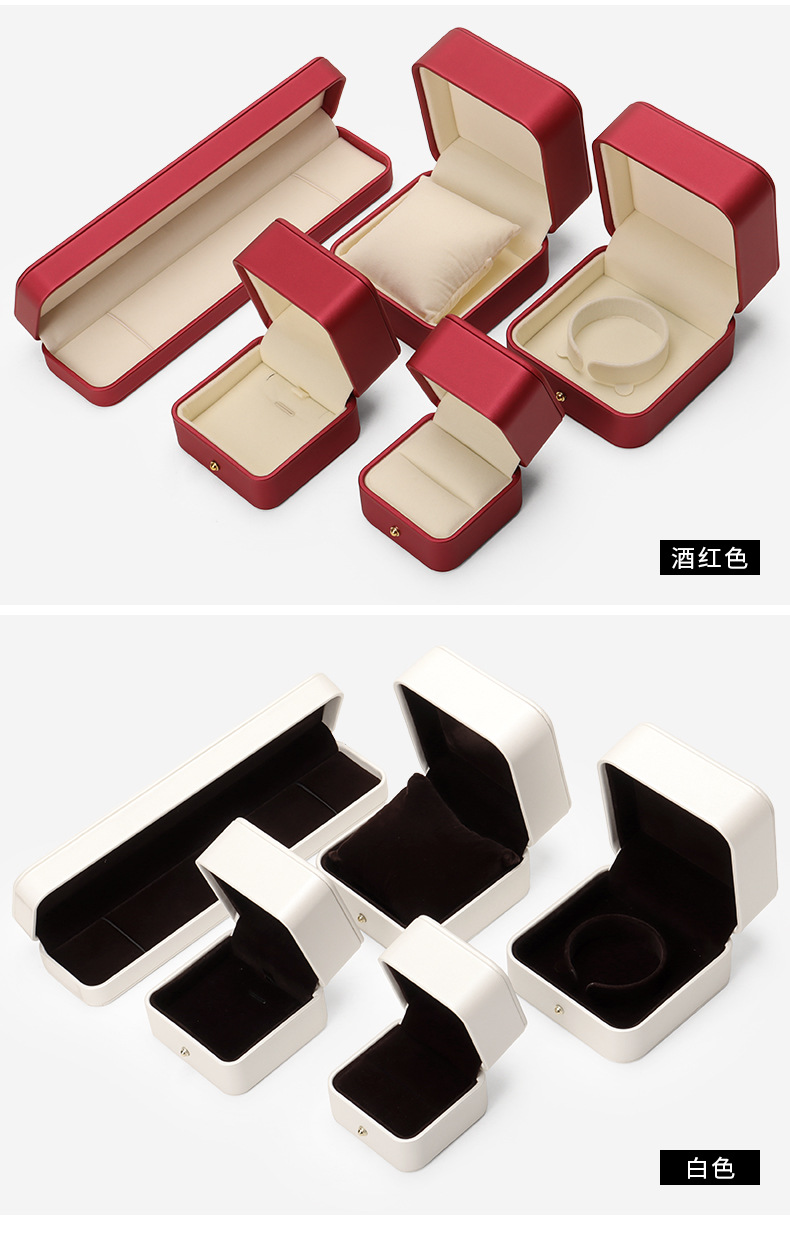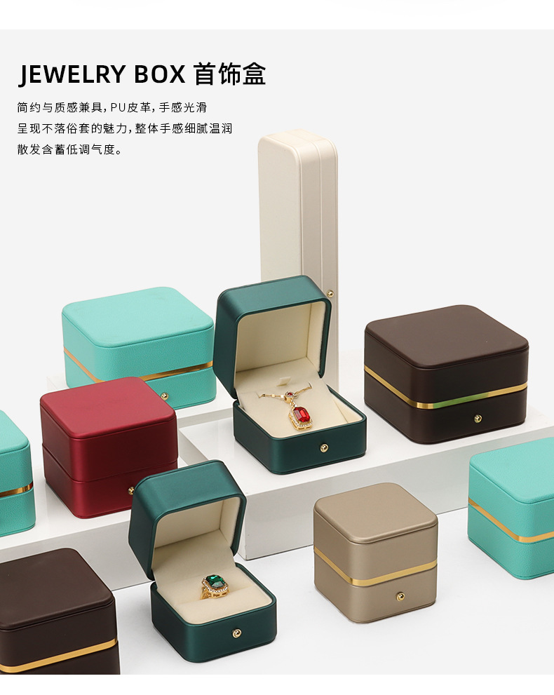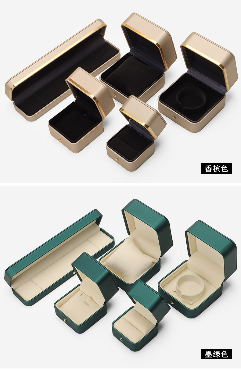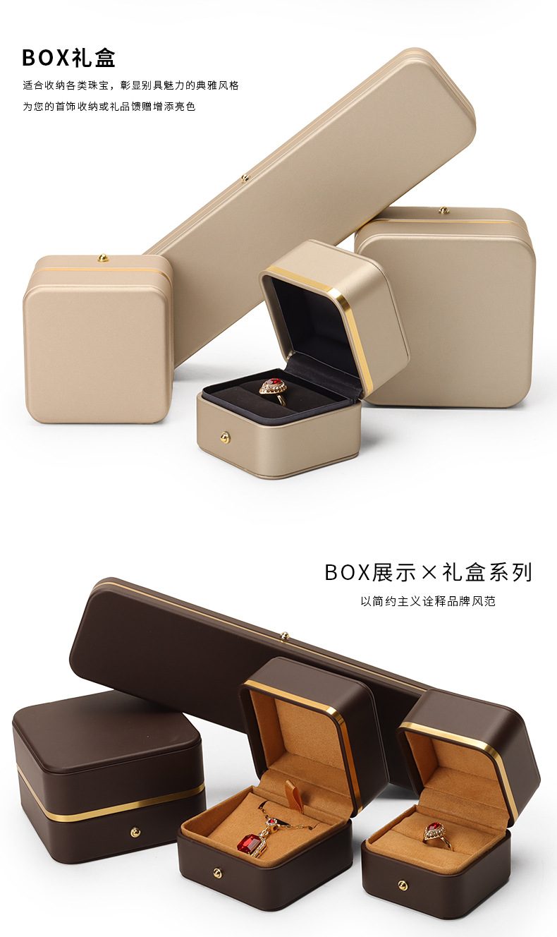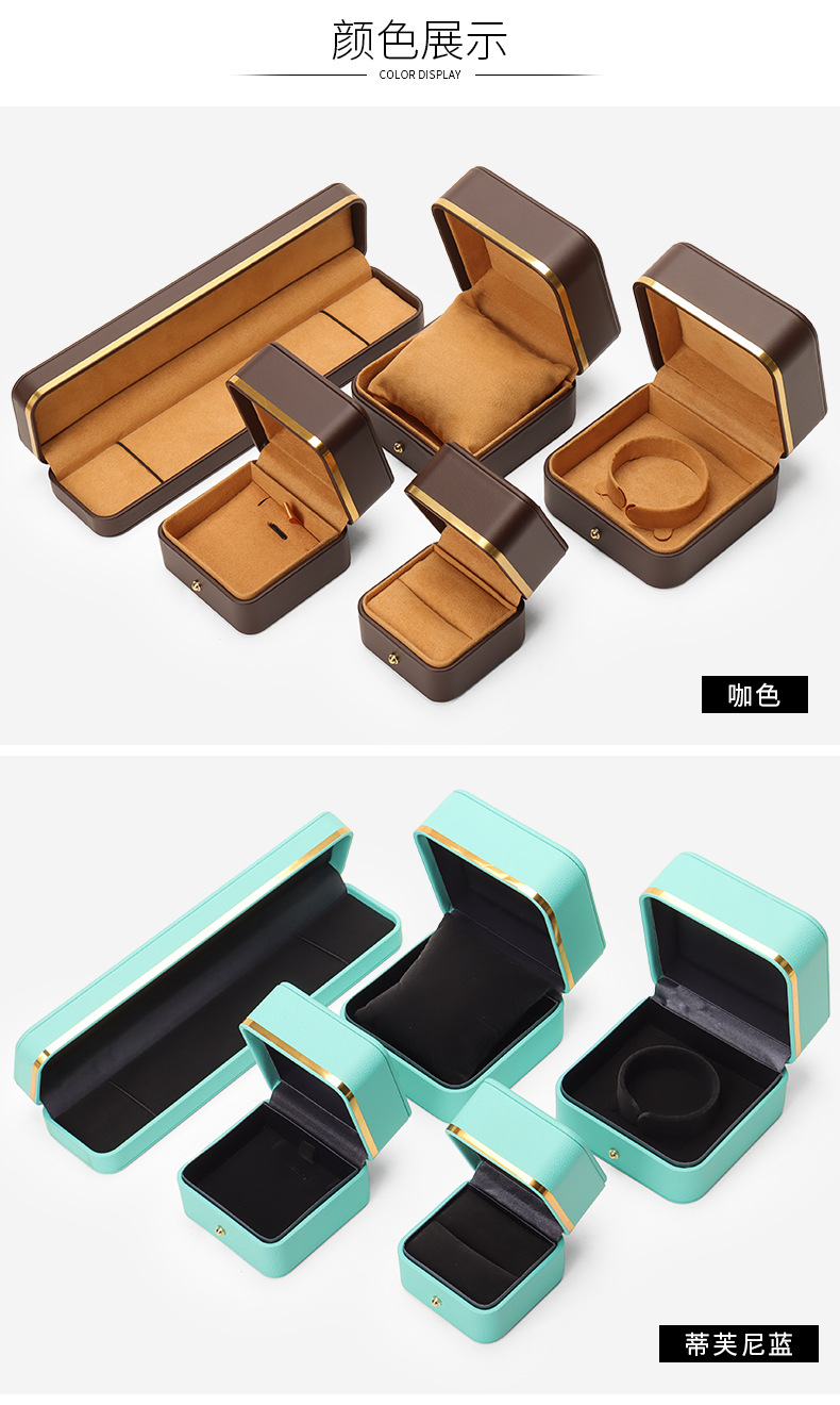 Caja de joyería de cuero de PU de borde dorado redondeado al por mayor caja de regalo de joyería de gama alta caja de reloj caja de joyería colgante de anillo