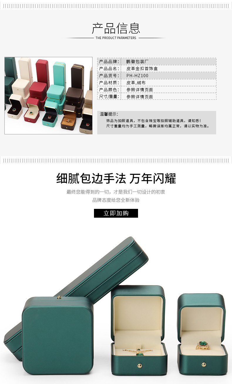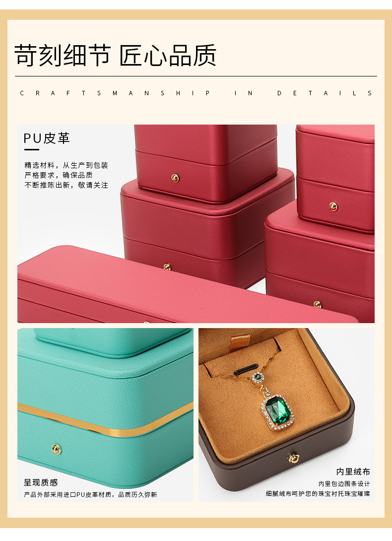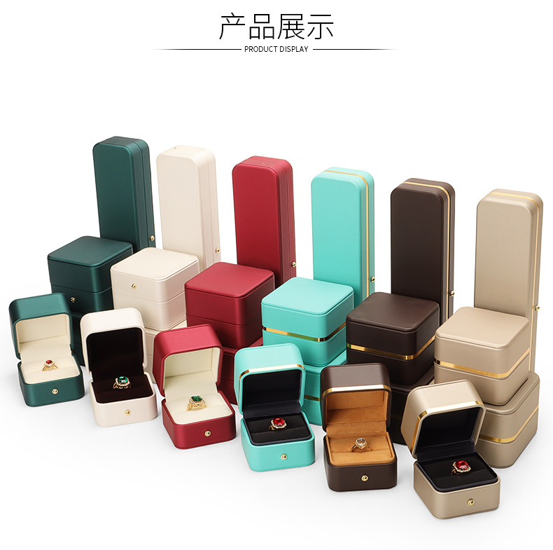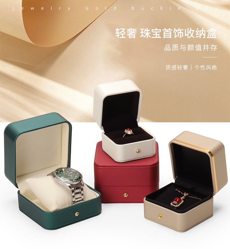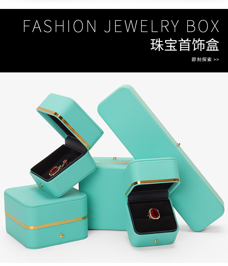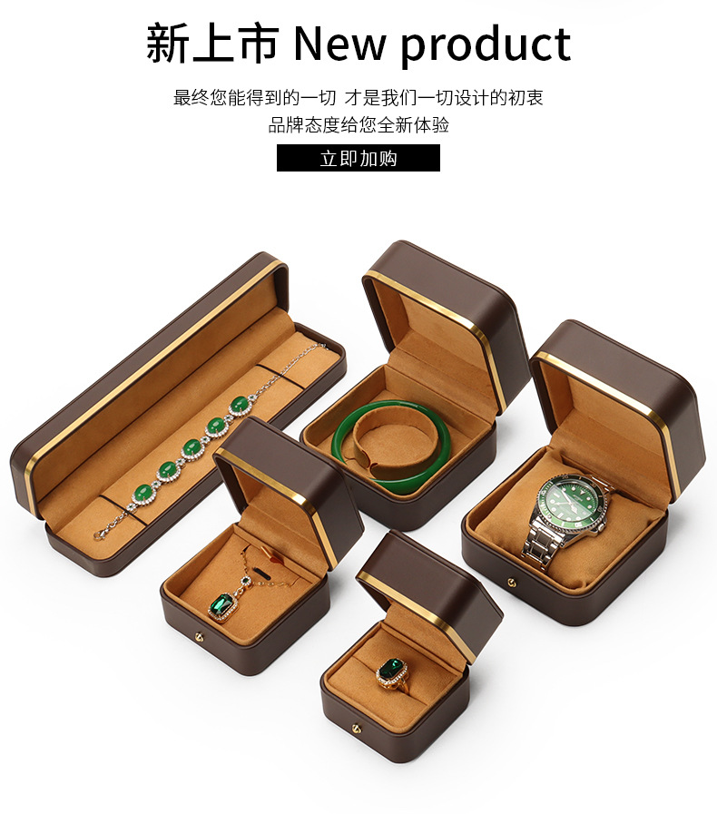 Caja de joyería de cuero de PU de borde dorado redondeado al por mayor caja de regalo de joyería de gama alta caja de reloj caja de joyería colgante de anillo