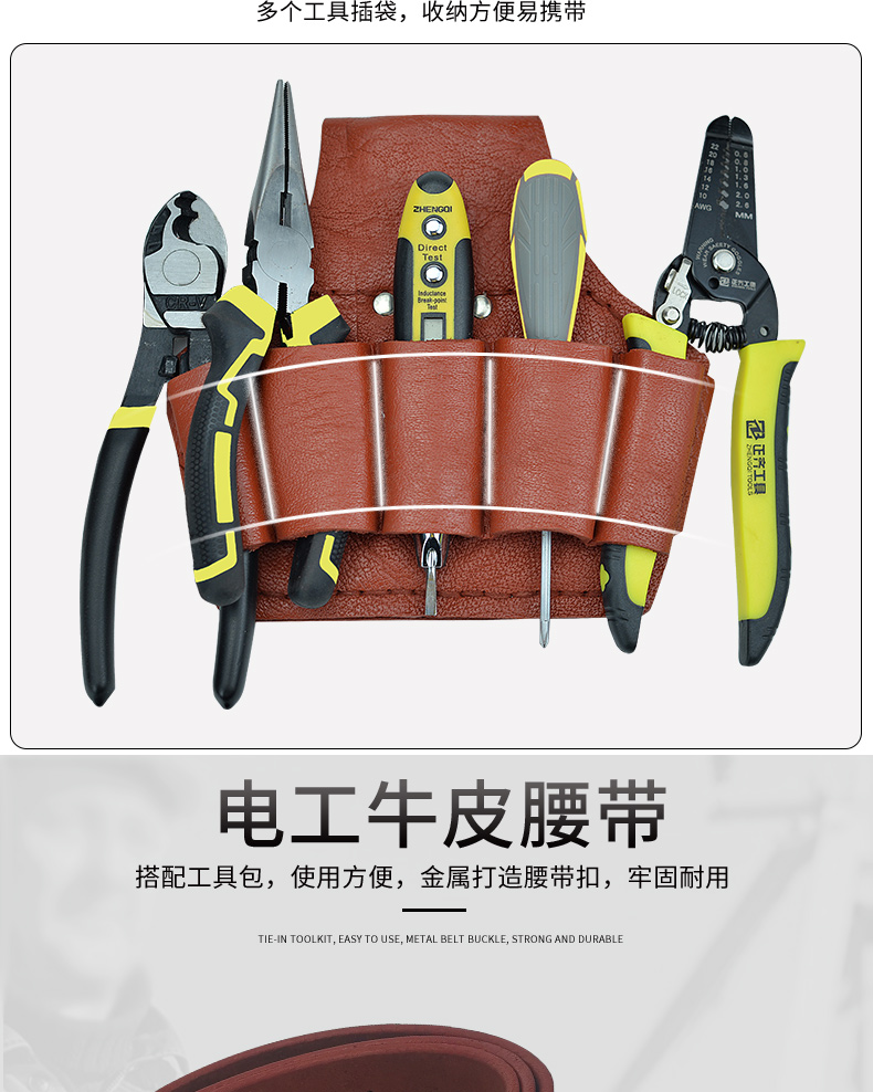 Paquete de herramientas de piel de vaca, cinturón de espesor, bolsa de trabajo especial para electricista, bolsa de hardware resistente al desgaste para sitio de construcción, bolsa de almacenamiento para hombres