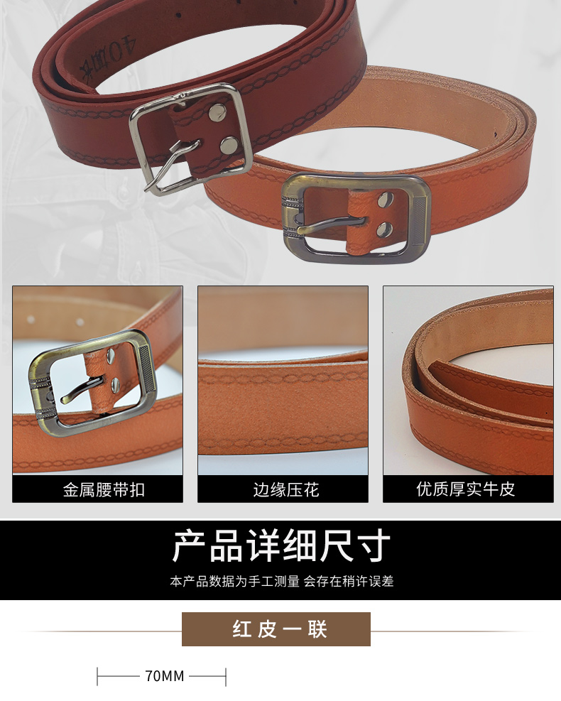 | Especificaciones y modelos | Piel roja 1 lian, piel roja 2 lian, piel roja 3 lian, piel roja grande 3 lian, piel roja 4 lian, modelo económico clásico 5 lian, clásico 5 lian, clásico 5 lian, clásico 11 clavos 5 lian, clásico 6 lian, clásico 7 lian, oreja única 7 Lian - piel de vaca de dos capas, cinturón [piel de vaca de dos capas], cinturón [piel de vaca de cabeza], traje clásico 5 Lian (cinturón de piel de vaca de dos capas), traje clásico 7 Lian (cinturón de piel de vaca de dos capas), traje económico 5 Lian (cinturón de piel de vaca de cinco capas) |