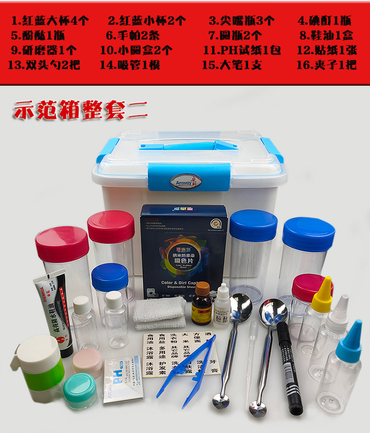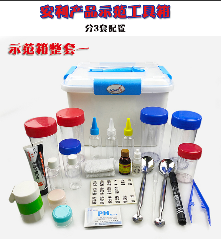 Caja de herramientas de demostración de productos Amway, conjunto completo de caja de almacenamiento multifuncional de plástico portátil de doble capa, demostración auxiliar de productos