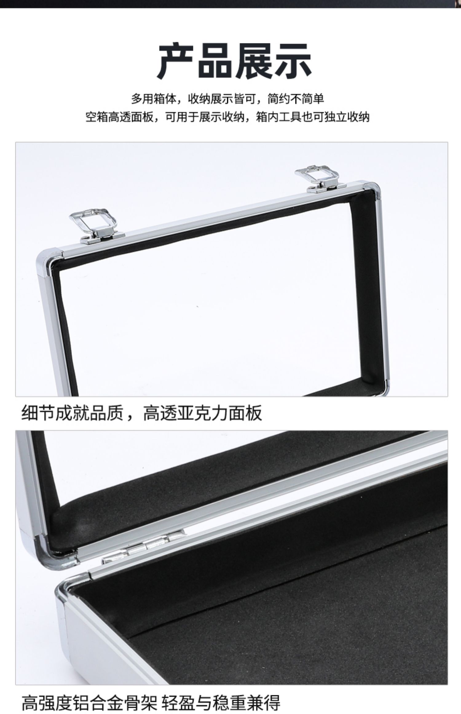 Kit de herramientas de hardware de mantenimiento doméstico multifuncional caja de aluminio multifuncional especial mantenimiento acrílico transparente pantalla