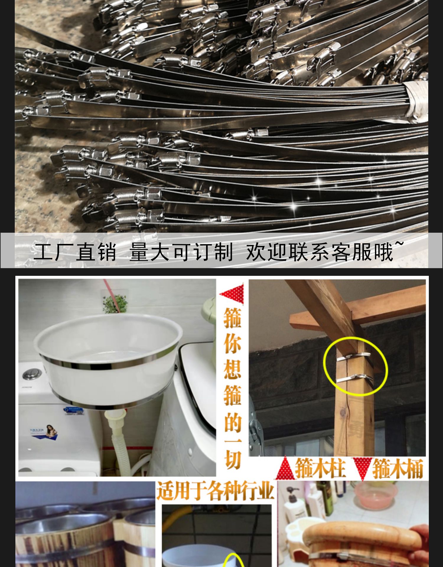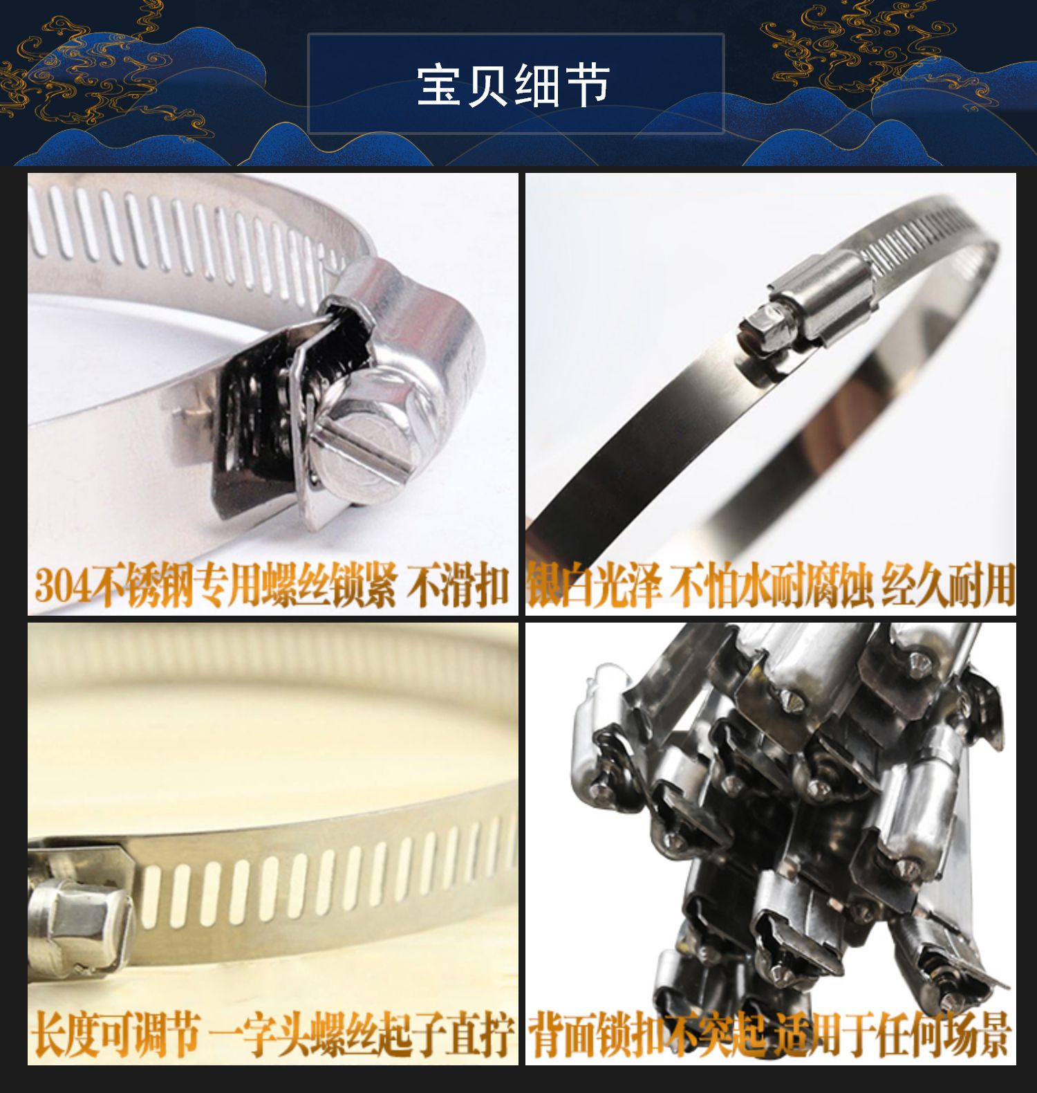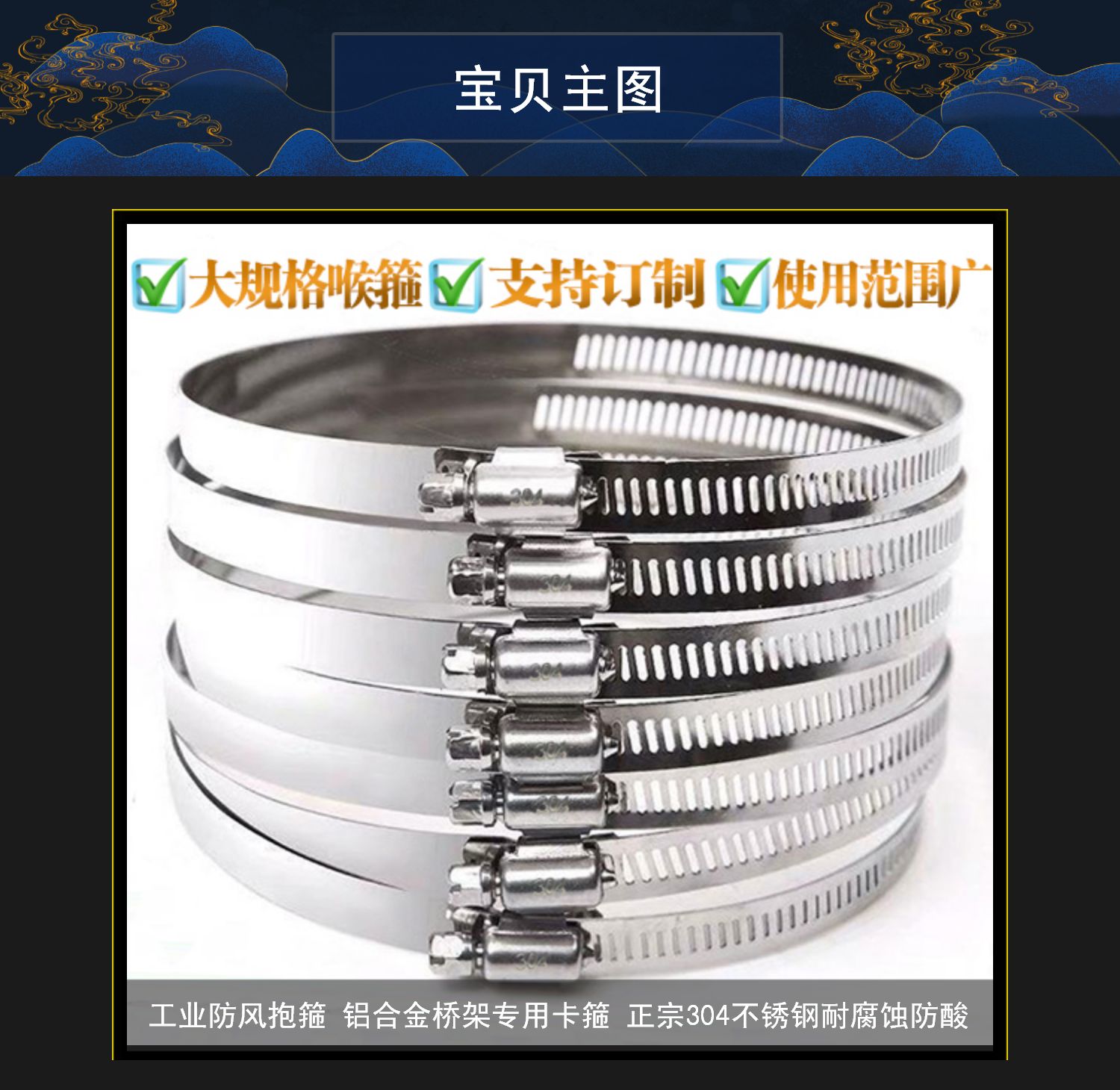 Acero inoxidable estándar nacional de garganta gruesa abrazadera apretada correa metálica gran especificación alargada lazos industriales