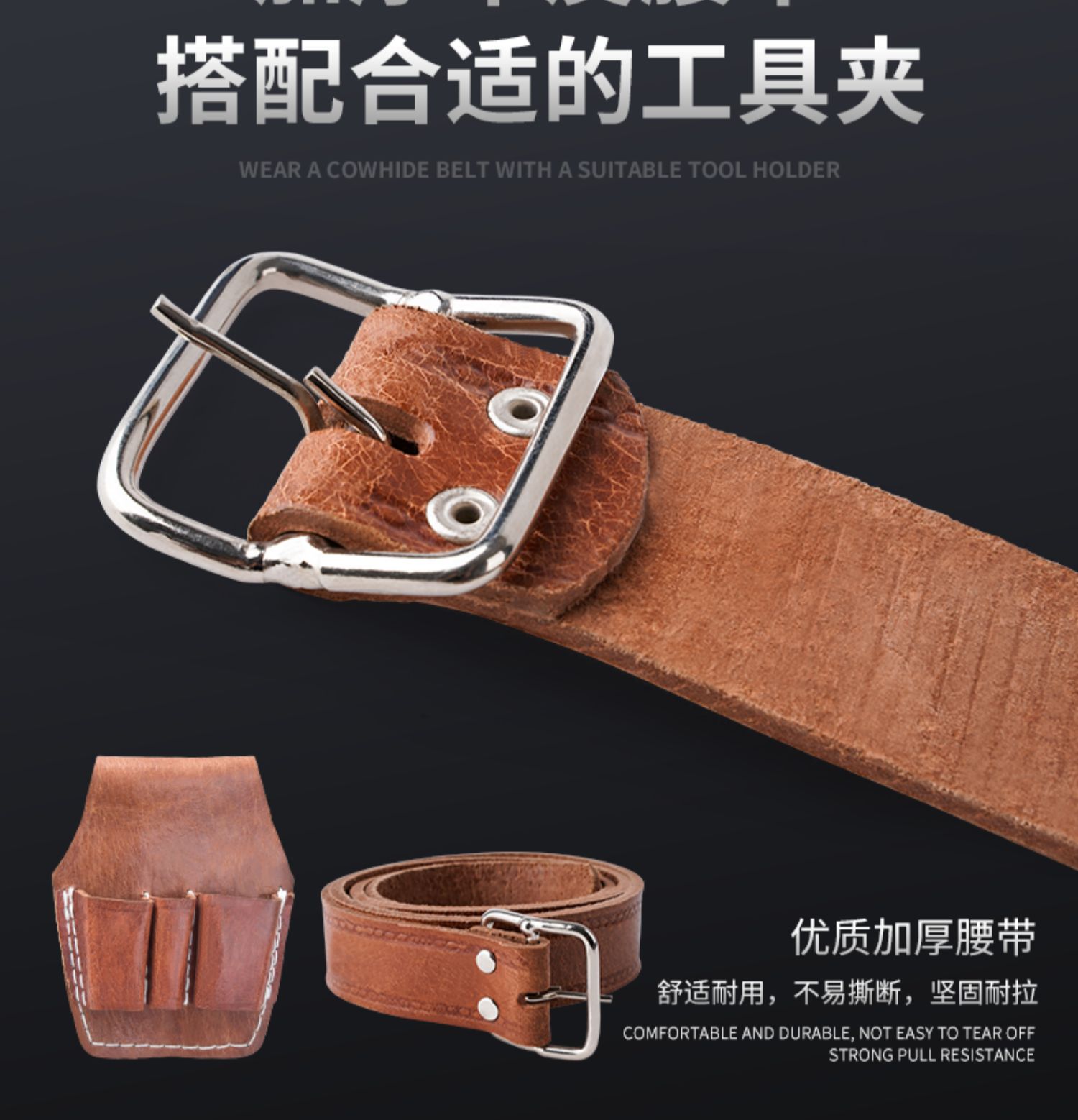Paquete de herramientas eléctricas, cinturón de cuero de vaca, funda de cuero especial no lona, cinturón de cuero puro para hombres, bolsa multifuncional