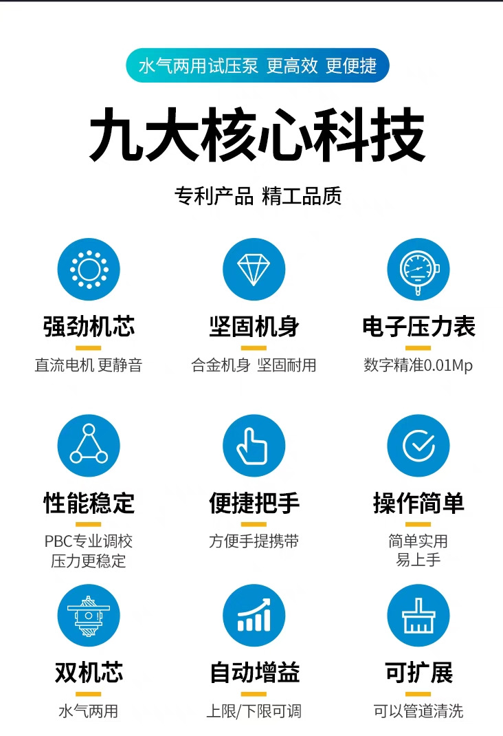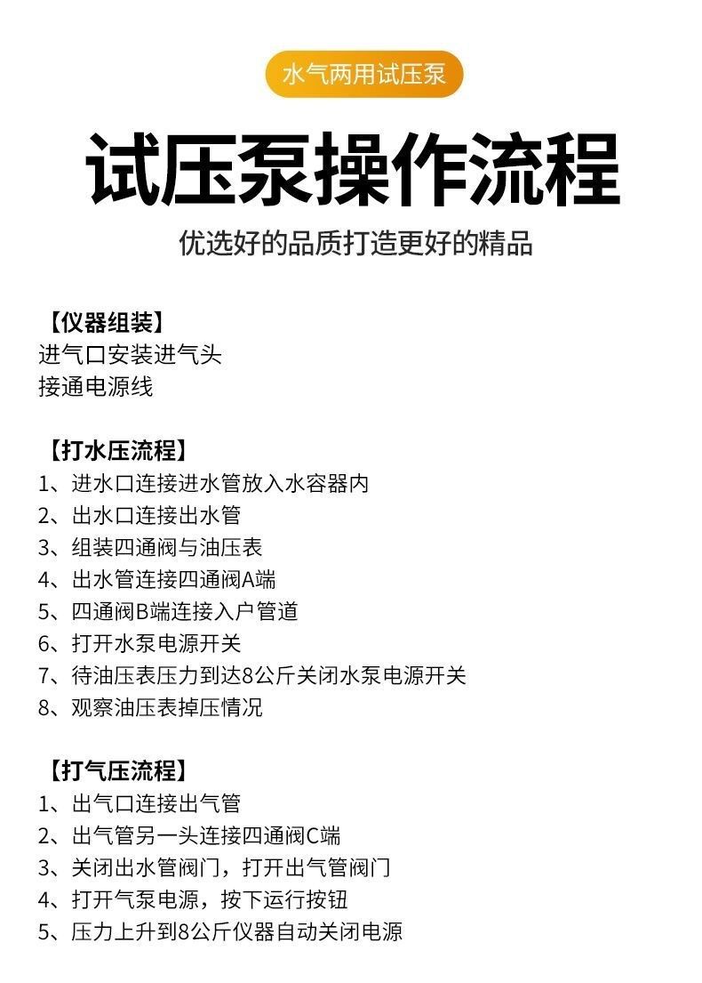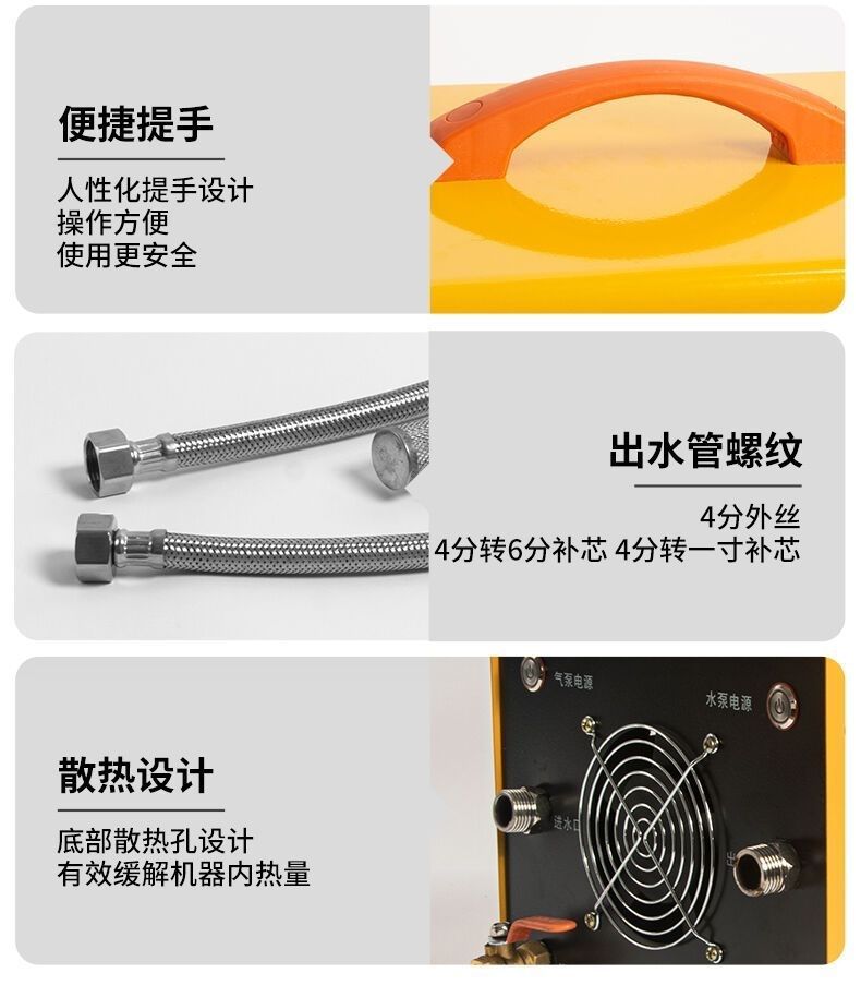 | Especificaciones | Modelo de bomba de aire único (válvula de cuatro vías de entrega + manómetro sísmico + dos tubos de presión), modelo económico (válvula de cuatro vías de entrega + dos tubos de prueba de presión + manómetro sísmico), modelo amarillo actualizado (válvula de cuatro vías de entrega + dos tubos de prueba de presión + tubo de entrada + manómetro sísmico), modelo azul actualizado (válvula de cuatro vías de entrega + dos tubos de presión + tubo de entrada + manómetro sísmico), modelo multifuncional (con modo de calefacción por vapor para enviar un conjunto completo de accesorios de limpieza de presión) |