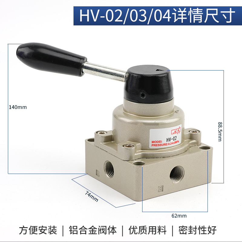 Componentes neumáticos interruptor manual de tres posiciones de cuatro vías válvula giratoria manual válvula de placa manual HV-02 HV-03 HV-04HV-200D