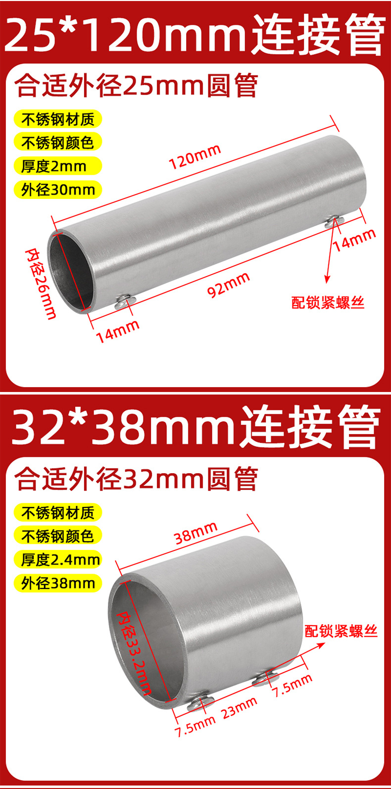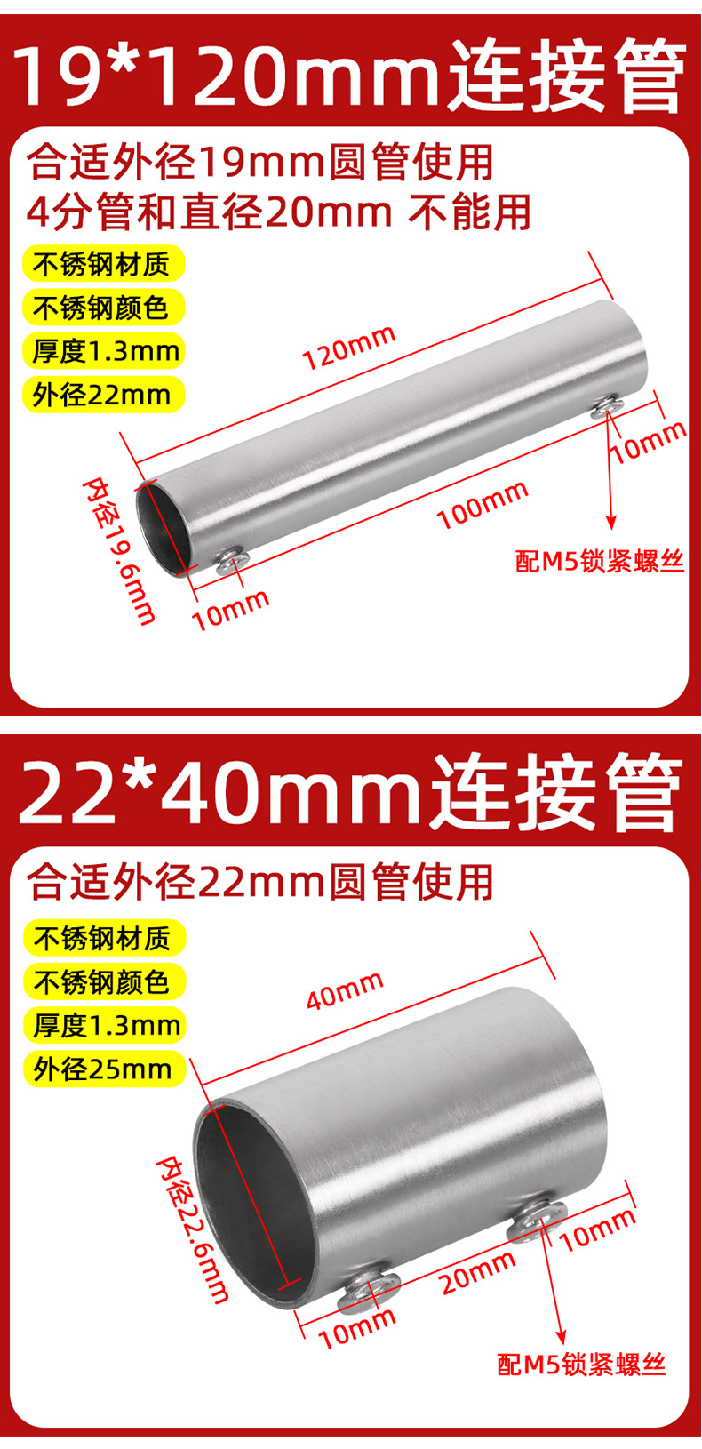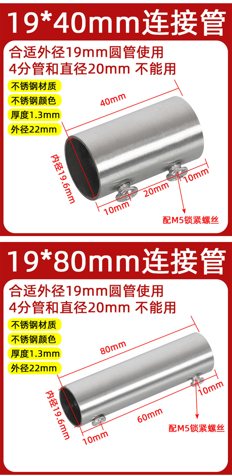 | Modelo de especificación | 19*40mm tubo de conexión/1 solo,19*80mm tubo de conexión/1 solo,19*120mm tubo de conexión/1 solo,19*200mm tubo de conexión/1 solo,22*40mm tubo de conexión/1 solo,22*80mm tubo de conexión/1 solo,22*120mm tubo de conexión/1 solo,22*200mm tubo de conexión/1 solo,25*38mm tubo de conexión/1 solo,25*80mm tubo de conexión/1 solo,25*120mm tubo de conexión/1 solo,25*200mm tubo de conexión/1 solo,28*38mm tubo de conexión/1 solo,28*80mm tubo de conexión/1 solo,28*120mm tubo de conexión/1 pieza,28*200mm tubo de conexión/1 solo,32*38mm tubo de conexión/1 solo,32*80mm tubo de conexión/1 solo,32*120mm tubo de conexión/1 solo,32*200mm tubo de conexión/1 solo,38*80mm tubo de conexión/1 solo,38*120mm tubo de conexión/1 solo,38*200mm tubo de conexión/1 solo,50/51*80mm tubo de conexión/1 solo,50/51*120mm tubo de conexión/1 solo,50/51*200mm tubo de conexión/1 solo |