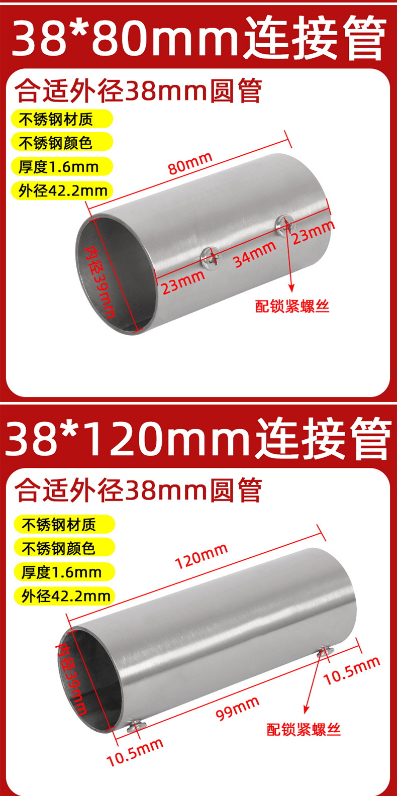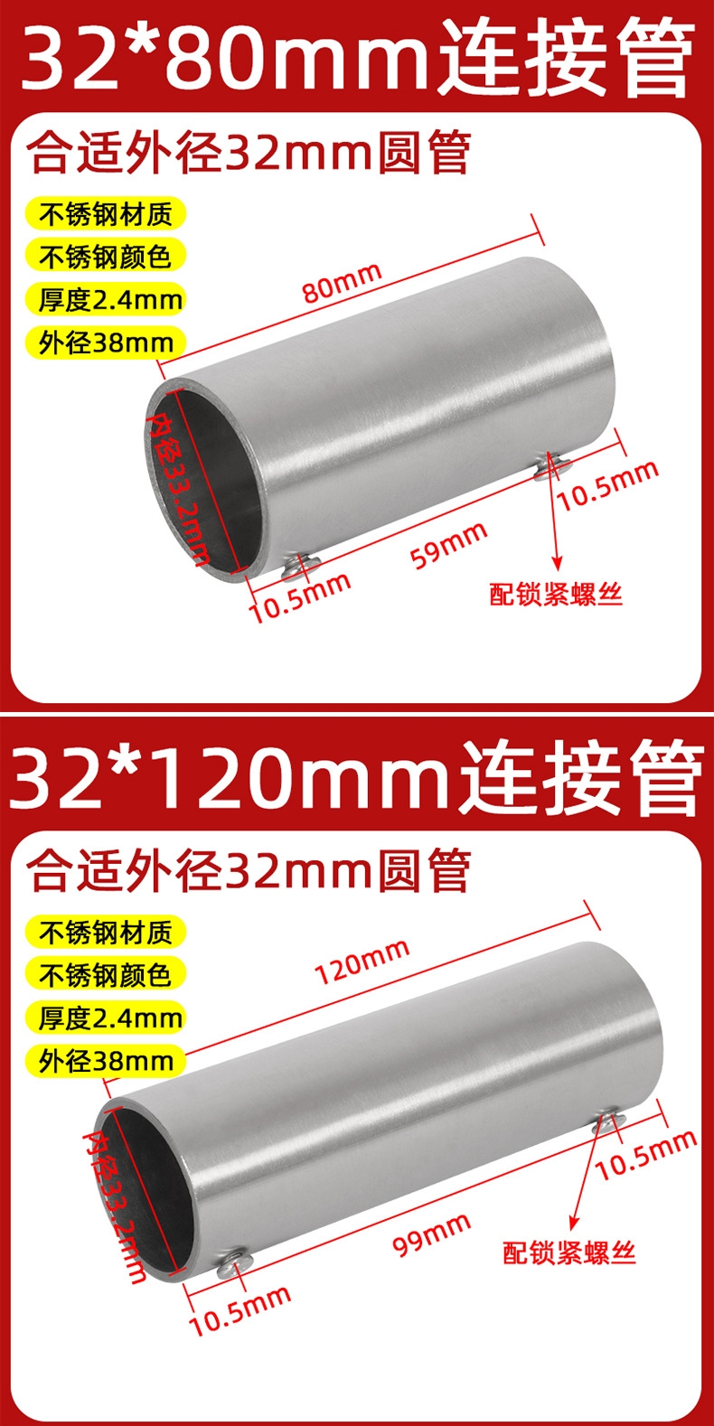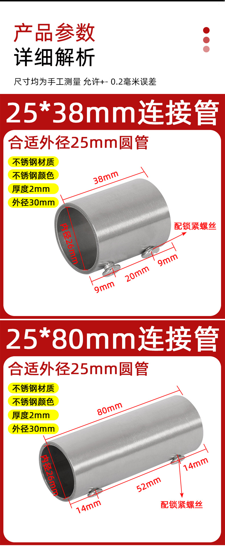 | Modelo de especificación | 19*40mm tubo de conexión/1 solo,19*80mm tubo de conexión/1 solo,19*120mm tubo de conexión/1 solo,19*200mm tubo de conexión/1 solo,22*40mm tubo de conexión/1 solo,22*80mm tubo de conexión/1 solo,22*120mm tubo de conexión/1 solo,22*200mm tubo de conexión/1 solo,25*38mm tubo de conexión/1 solo,25*80mm tubo de conexión/1 solo,25*120mm tubo de conexión/1 solo,25*200mm tubo de conexión/1 solo,28*38mm tubo de conexión/1 solo,28*80mm tubo de conexión/1 solo,28*120mm tubo de conexión/1 pieza,28*200mm tubo de conexión/1 solo,32*38mm tubo de conexión/1 solo,32*80mm tubo de conexión/1 solo,32*120mm tubo de conexión/1 solo,32*200mm tubo de conexión/1 solo,38*80mm tubo de conexión/1 solo,38*120mm tubo de conexión/1 solo,38*200mm tubo de conexión/1 solo,50/51*80mm tubo de conexión/1 solo,50/51*120mm tubo de conexión/1 solo,50/51*200mm tubo de conexión/1 solo |