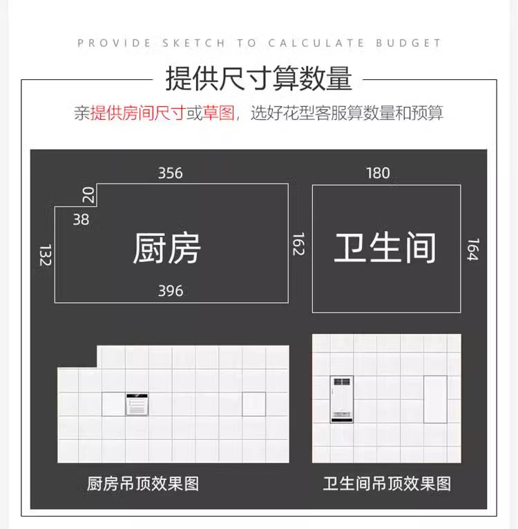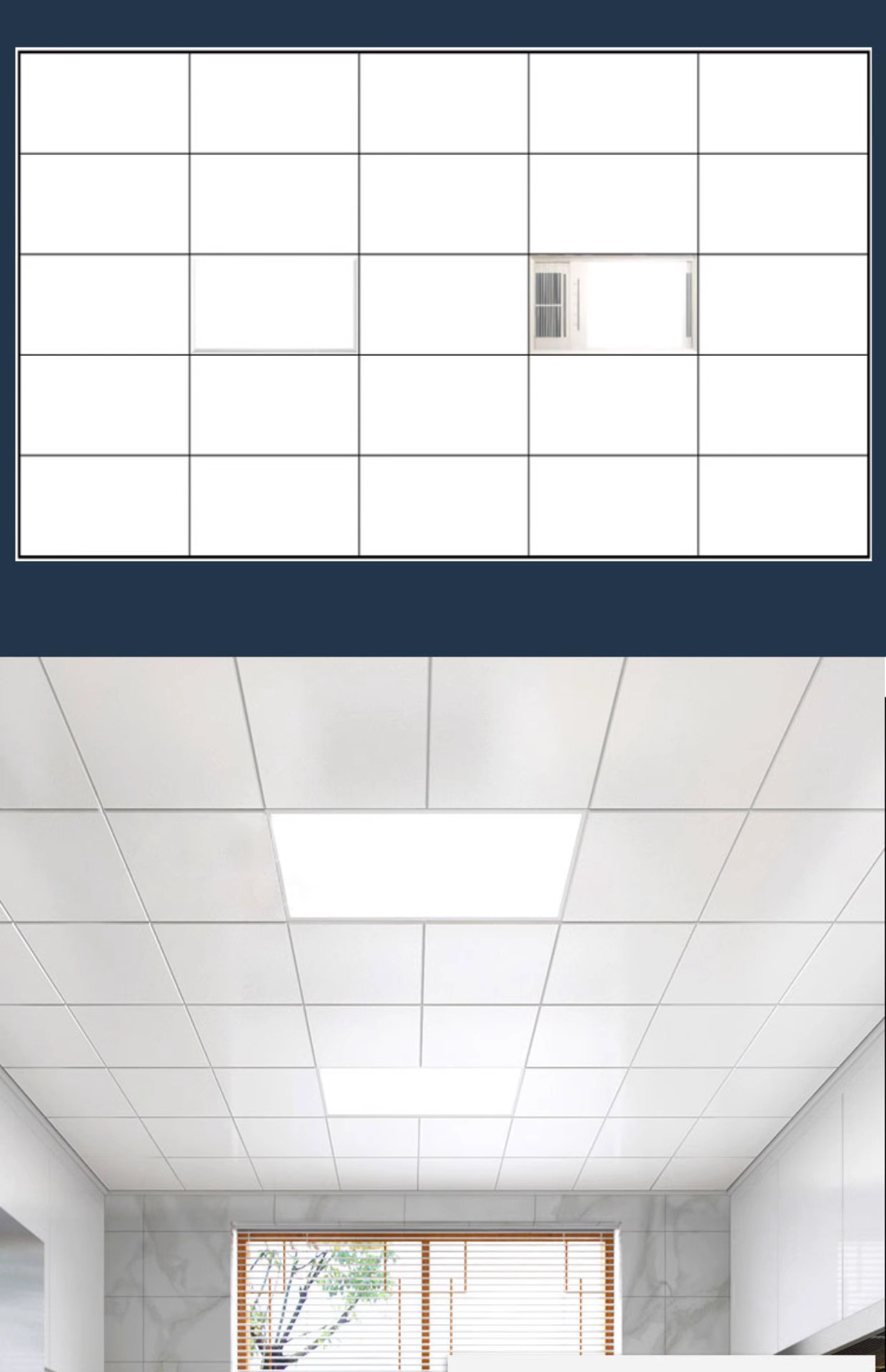 Techo integrado Techo de refuerzo de aluminio Techo de baño de cocina 300x600 conjunto completo de techo de material
